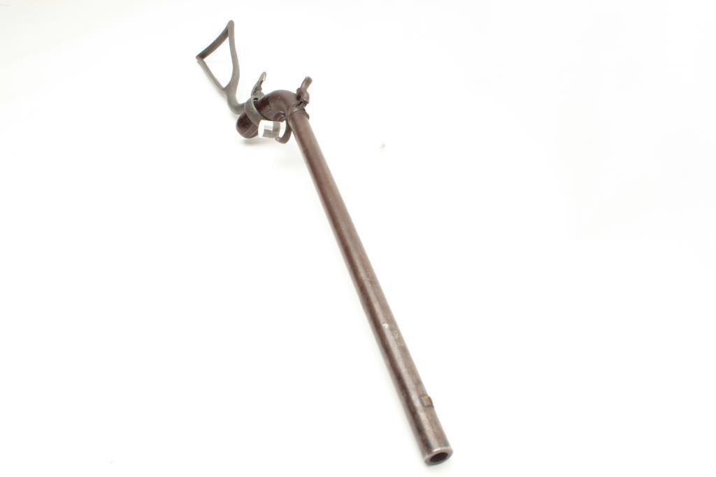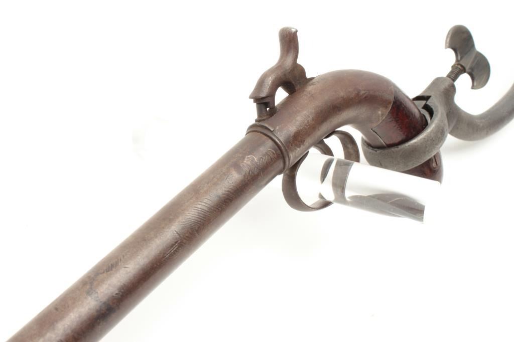 Early American percussion pocket or buggy rifle with removable stock and unmarked but similar to E. Allen. Nearly 15 ½” barrel of .45 caliber rifled and 32” with the stock attached. Brown patina finish and good to Lot Title very good condition overall with minor storage and use marks from the stock. (Antique) Est.: $550-1100