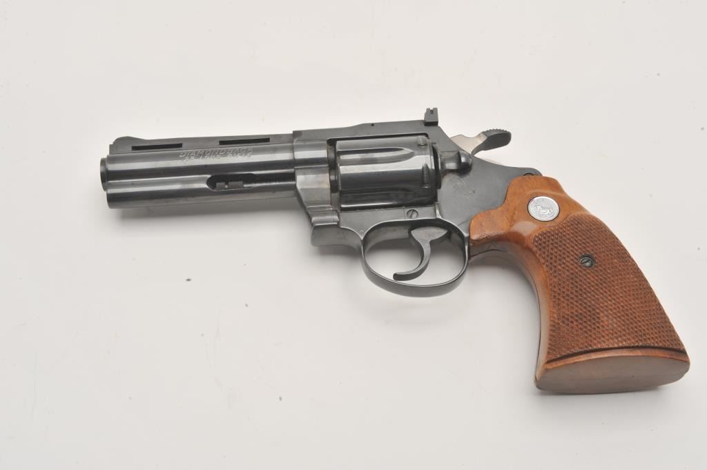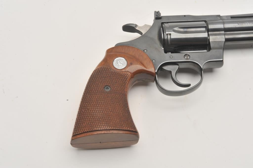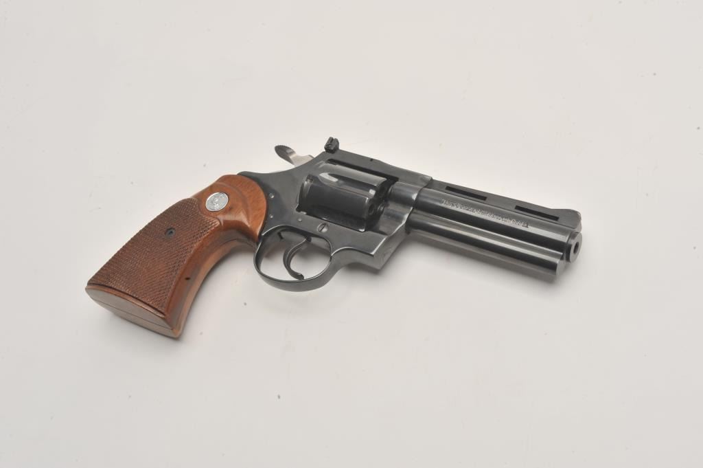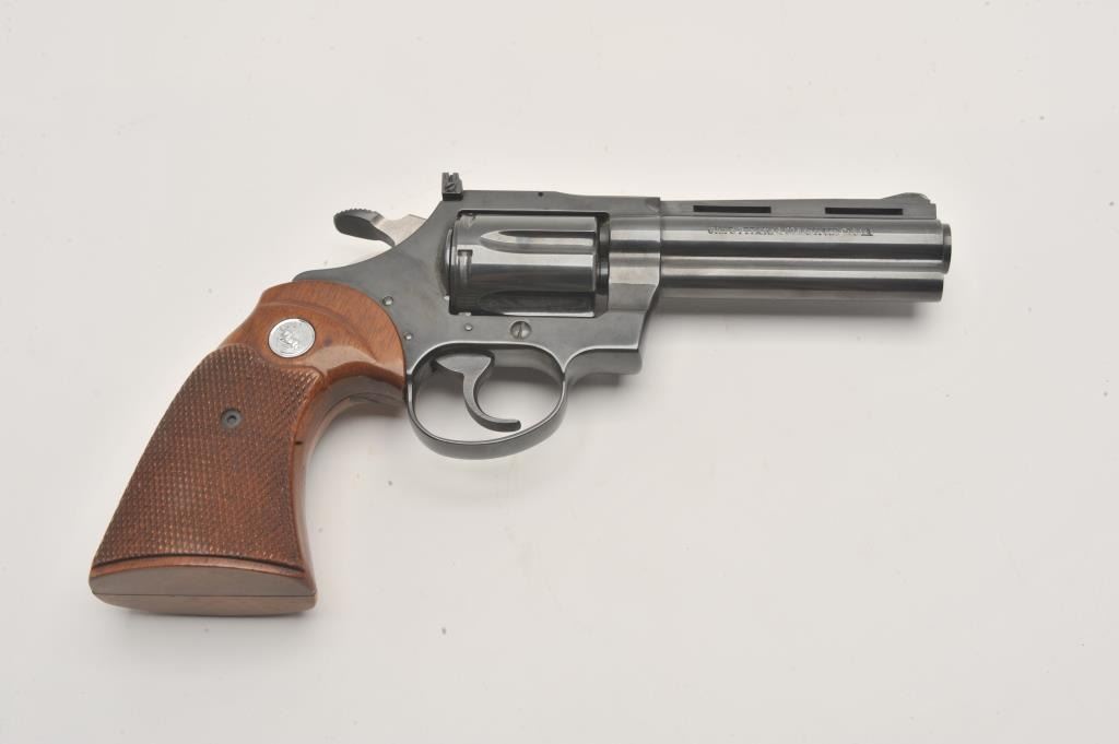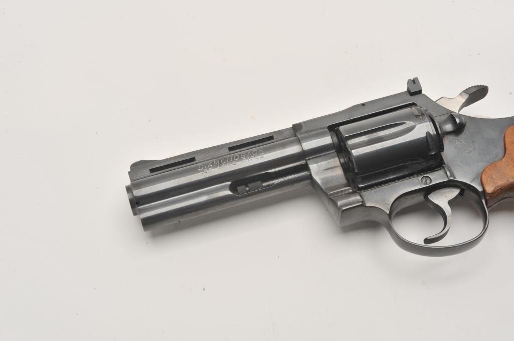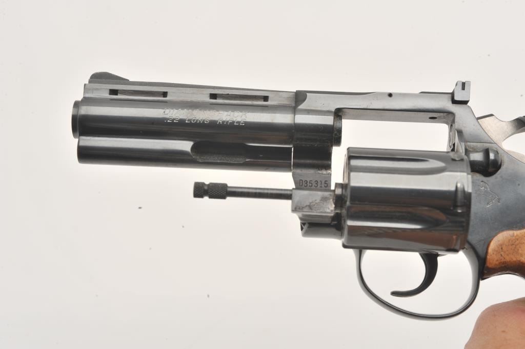 Colt Diamondback revolver, #D35315, .22 LR cal., 4" barrel, blued finish, wood grips. Fine condition overall, left grip panel shows a slight chip in the finish behind the trigger guard, approximately 1/2" by 1/4". Lot Title (Modern / PPT) Est. $1000-2000