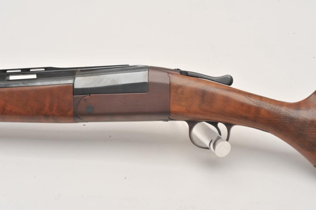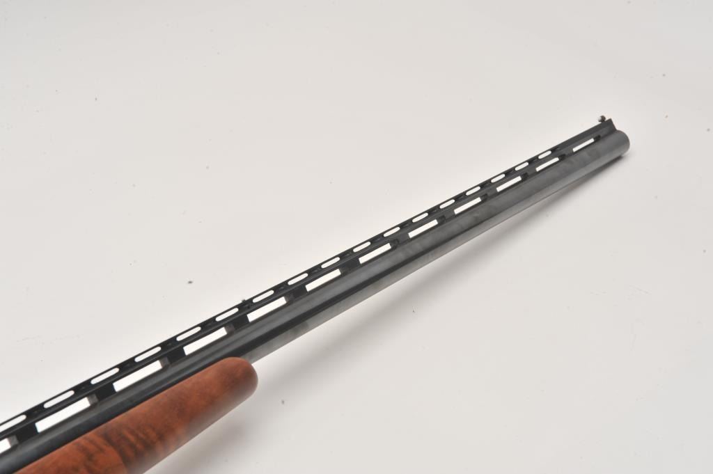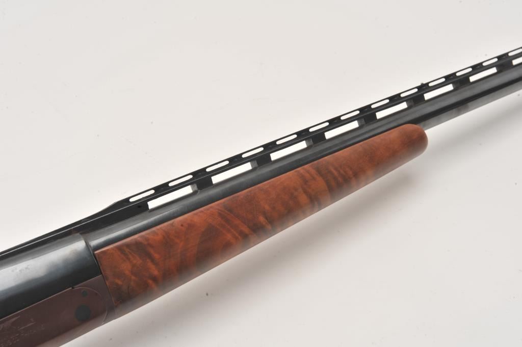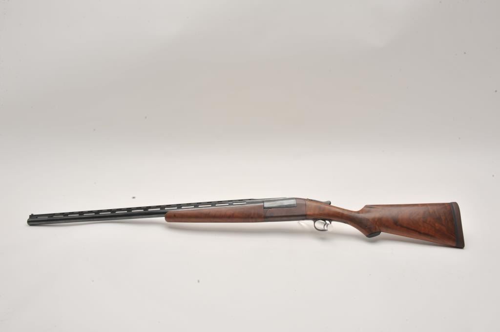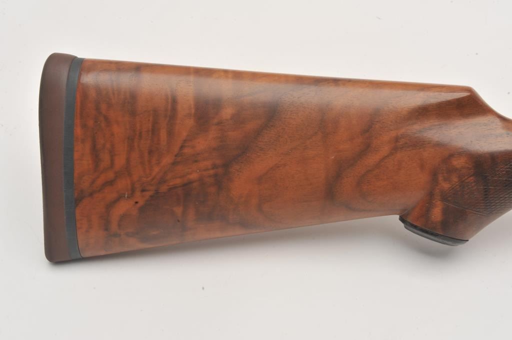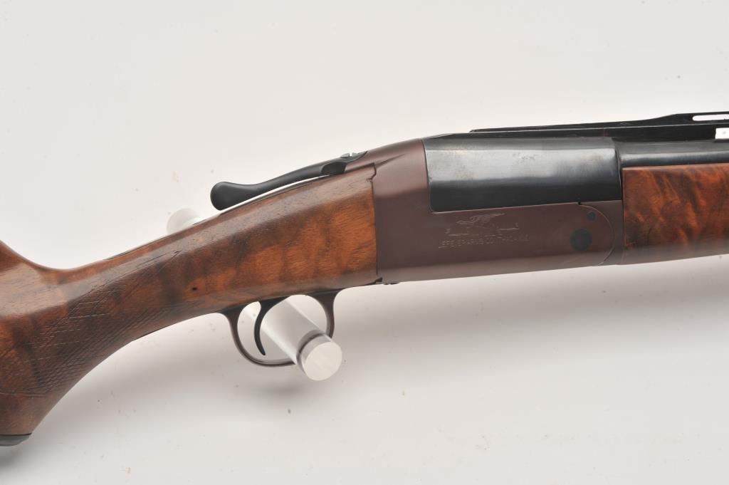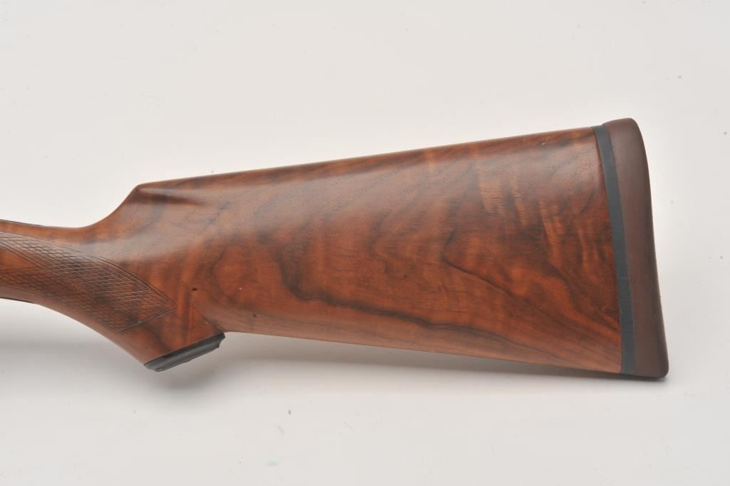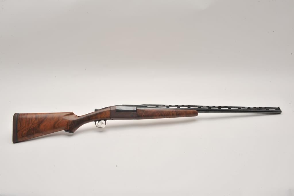 LeFever Arms Co. Single Barrel Trap 12GA Shotgun, S/N 15785 with a 32” barrel and high rise poly choke stacked rib added in modern times. Also restocked with nicely figured burl walnut. Measures 14” to the end of the Lot Title pad. Re-finished and very good overall. Very straight stocking with low rise. Est.: $600-$1200
