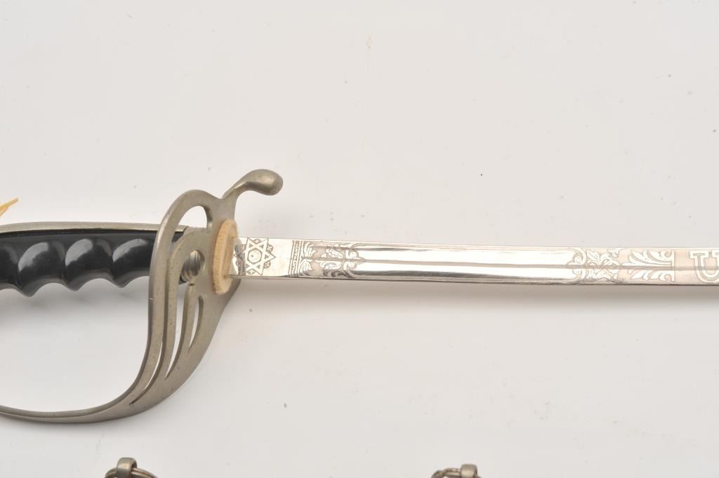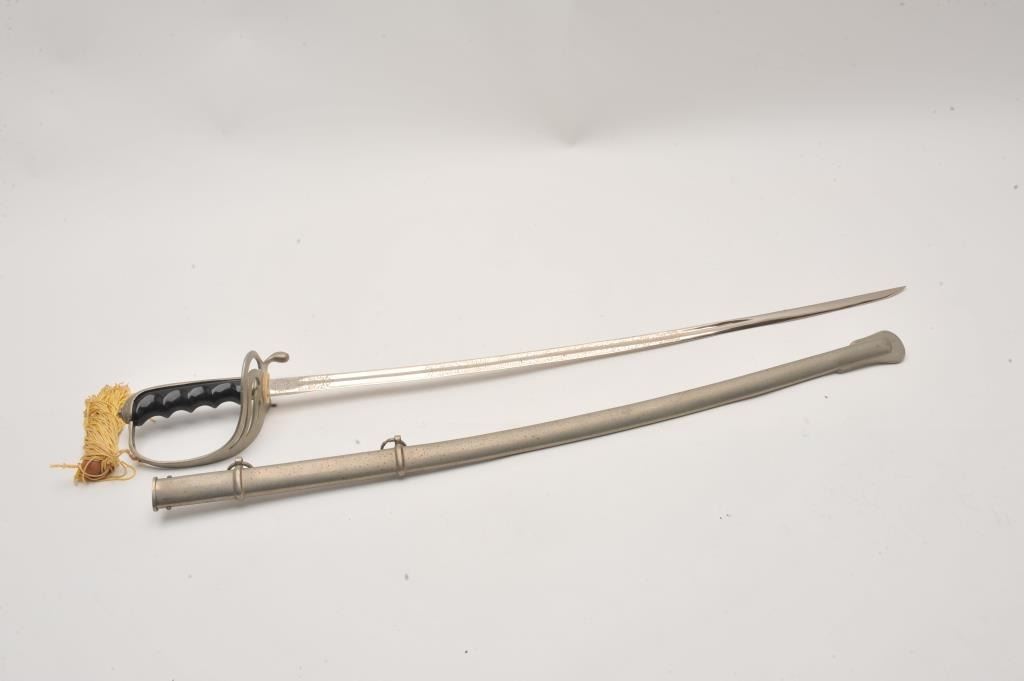 1902 U.S. Officer’s sword with scabbard. Fancy etched blade by Wolf-Brown and made in Spain. Very good plus overall with excellent blade. Est.: $100-$200