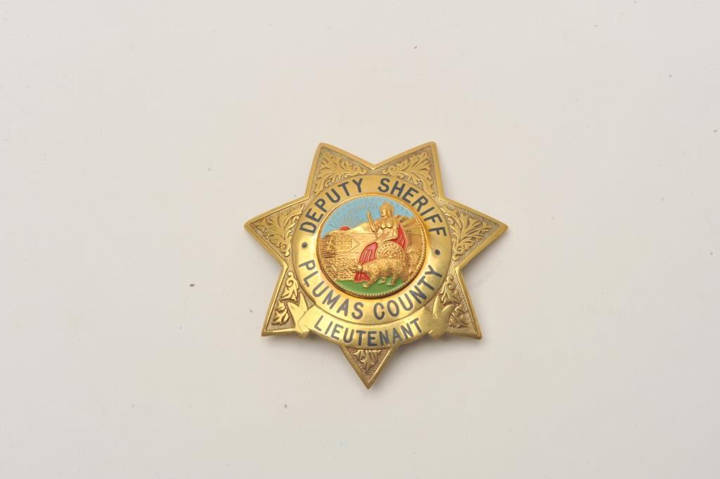 7 point star badge Deputy Sheriff Lieutenant Plumas County, CA (no hallmark). Est.: $150-$300.
