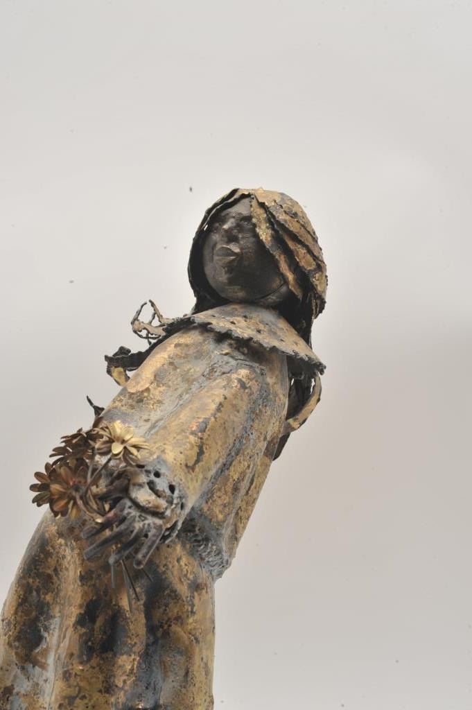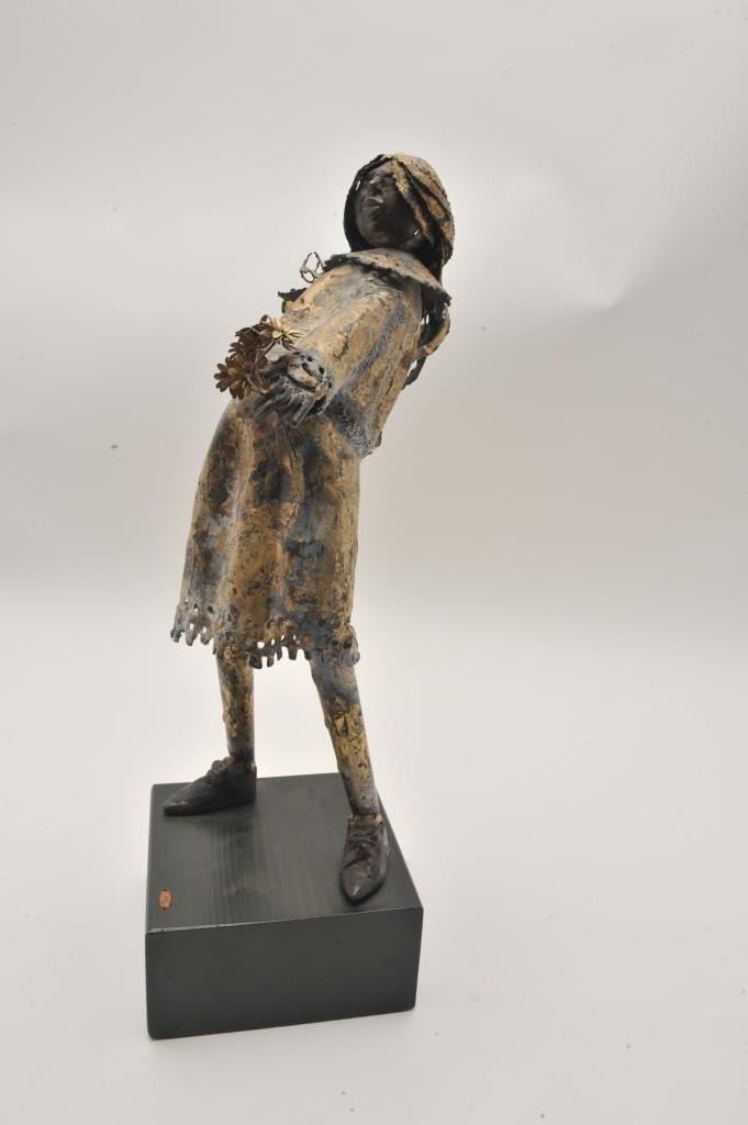 Large modern art sculpture in metal of a “Hippie flower girl” #67. Signed C. Jere. Measures 22 ½” in height. Est.: $300-$600