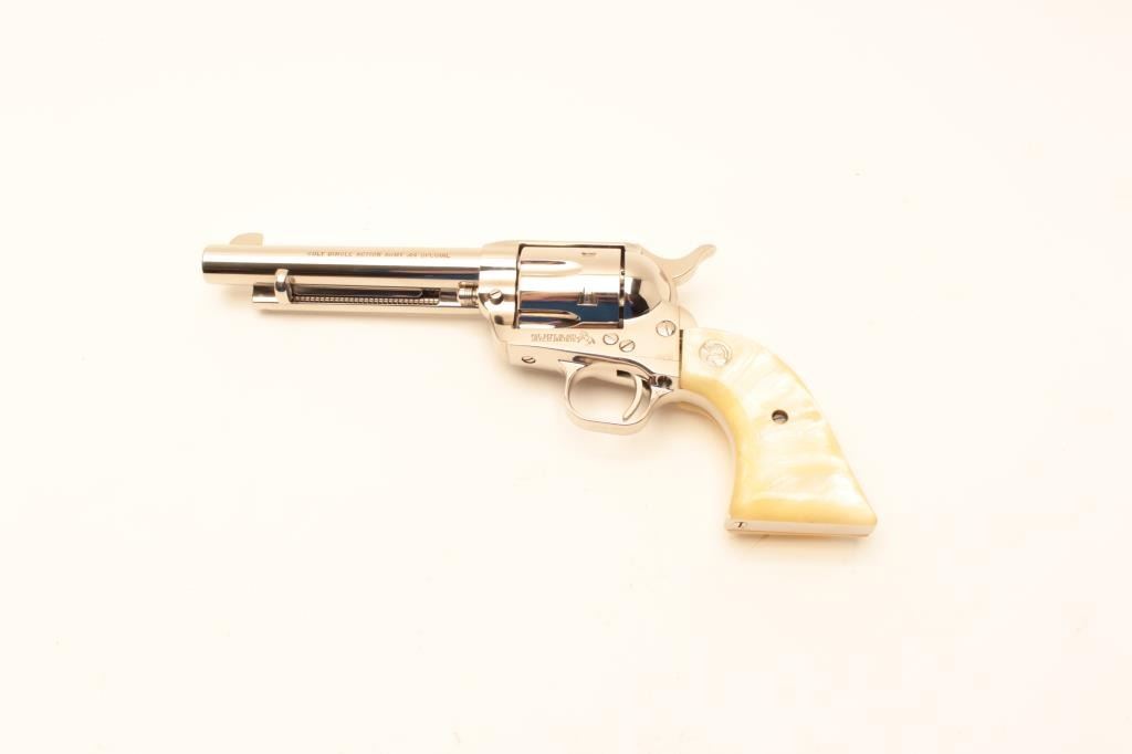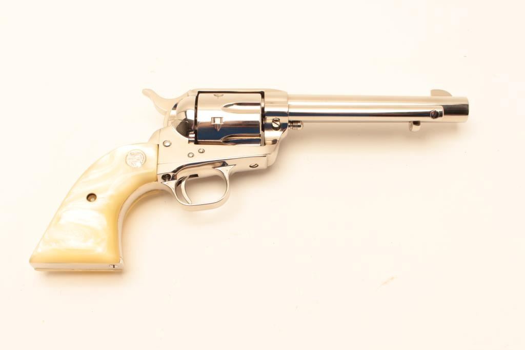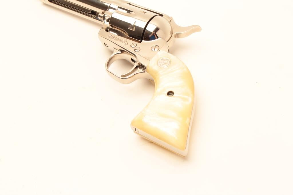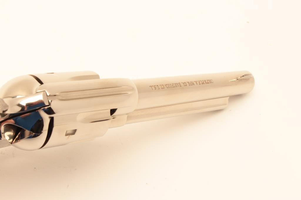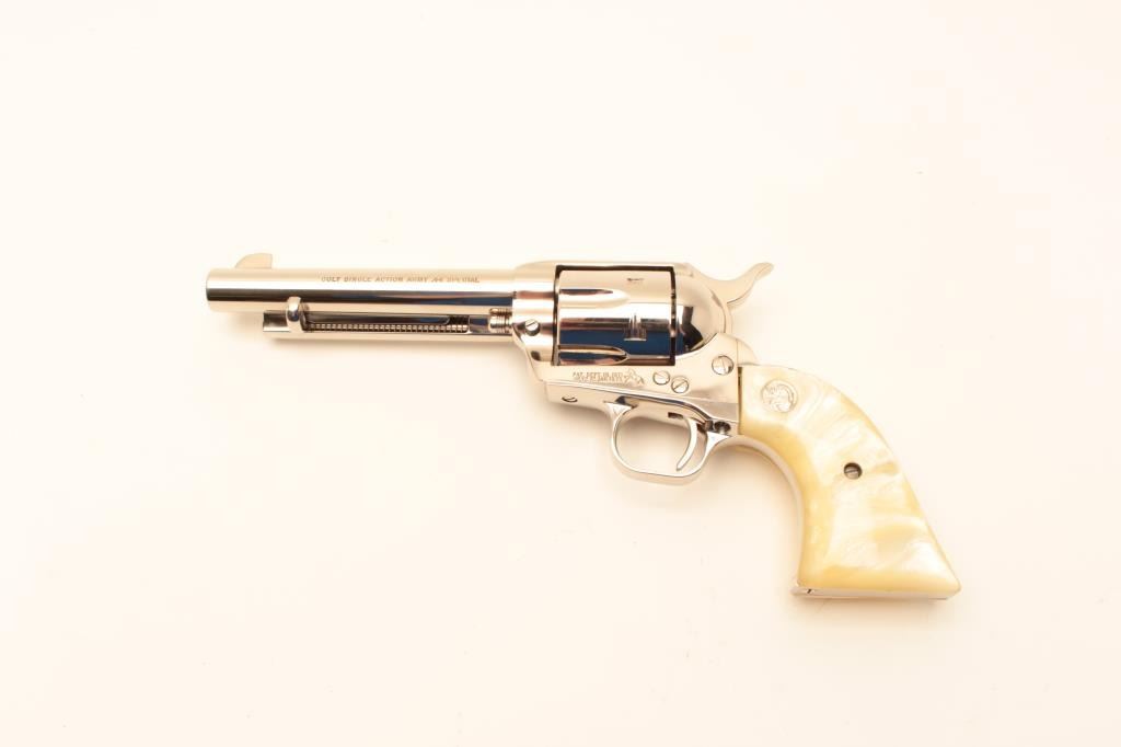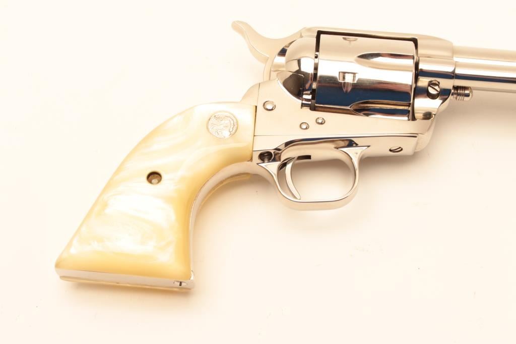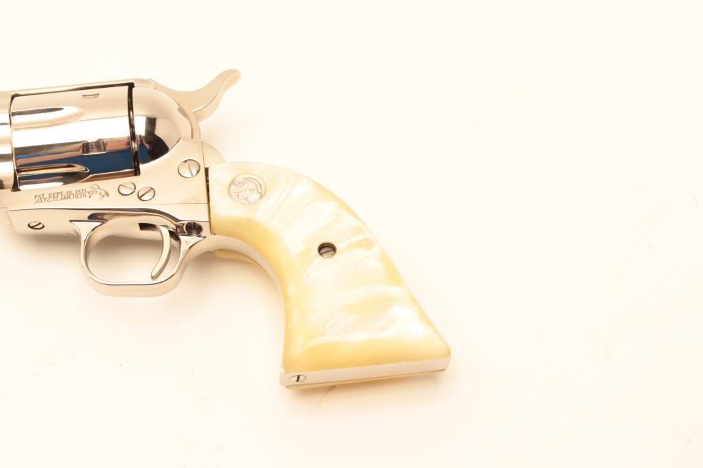 Colt SA Army Revolver 3rd Gen, #SA31780, nickel finish, .44 Spl., 5 1/2" barrel, faux perl medallion grips. Excellent condition overall. (Modern / PPT) Est. $900-1800