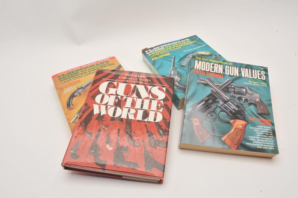 Lot of 7 soft cover research books on guns and gun values. Est.: $75-$150