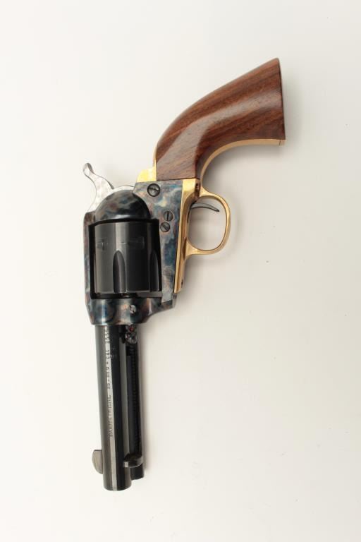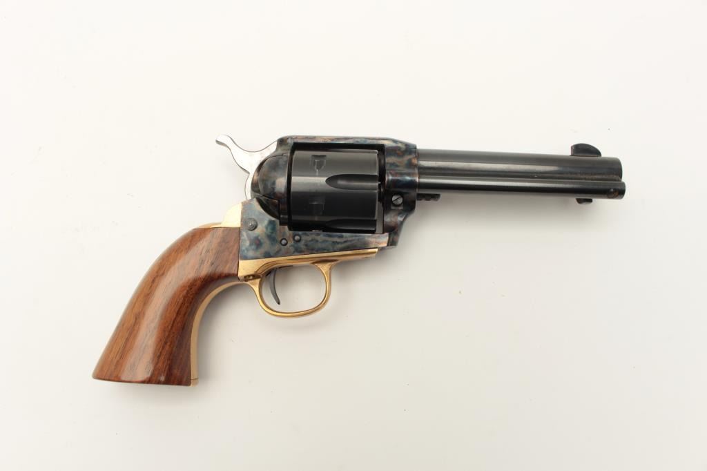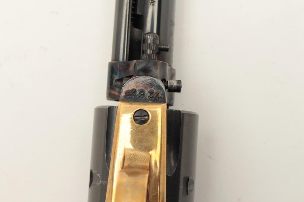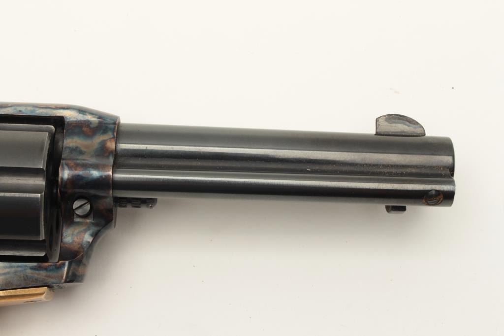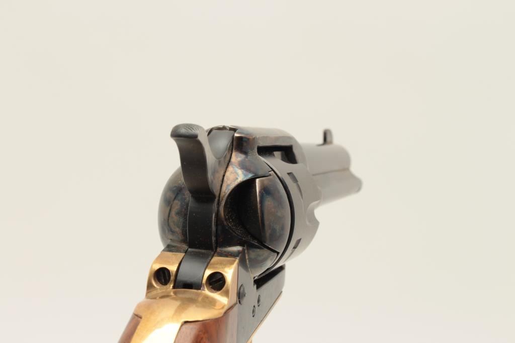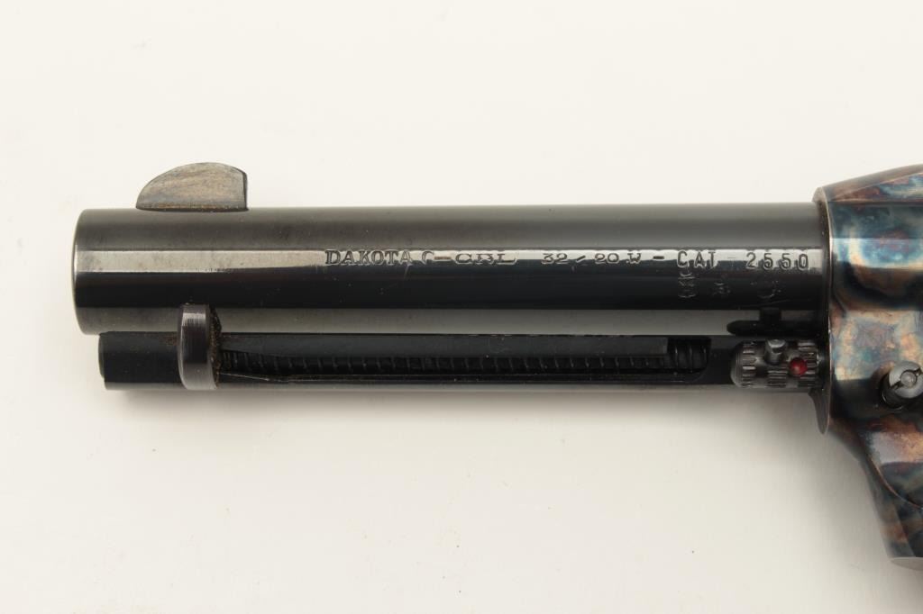 Dakota Arms 1873 model SA, #84934, .32-20 cal., 4 3/4" barrel, blue and color case hardened finish, jeweled hammer, with brass backstrap and wood grips. Revolver is in excellent condition. (Modern / PPT) Est. Lot Title $400-800