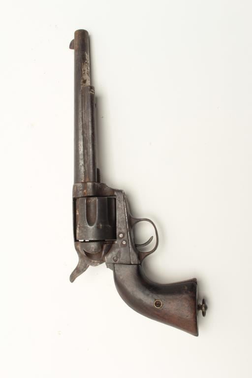 Rusty relic copy of a Colt SAA revolver by Anit & Char, wood grips, lanyard ring. From the collection of John O. Beckwith. Est.: $200-$400.