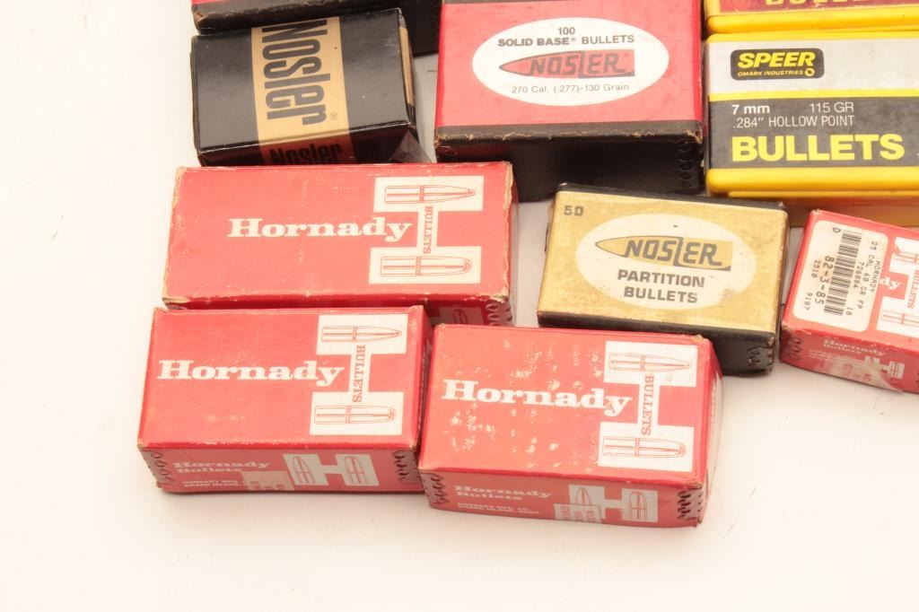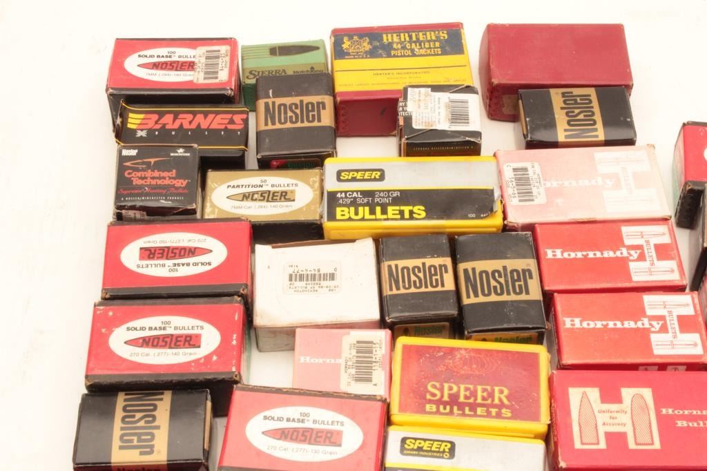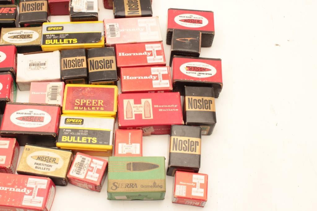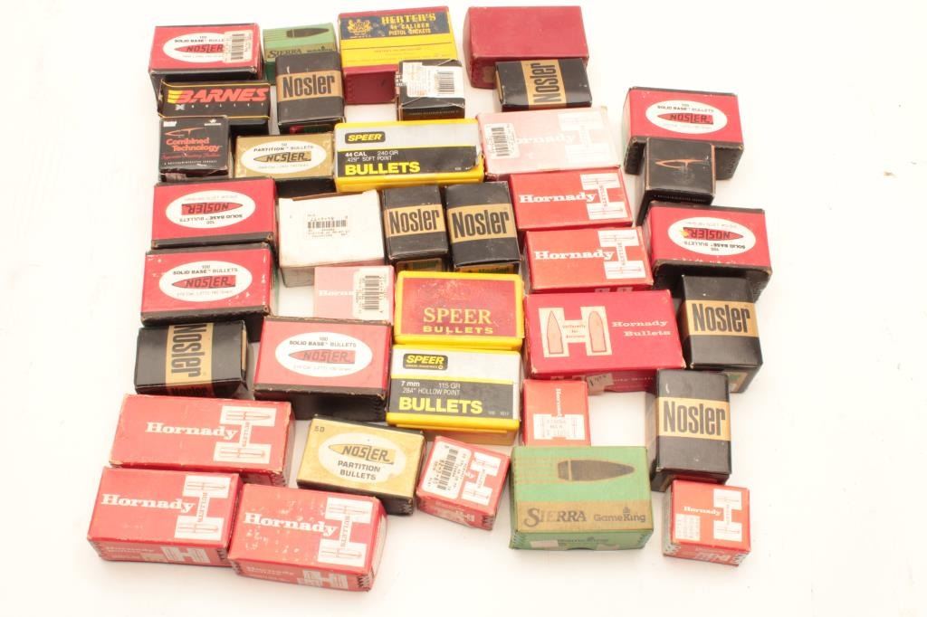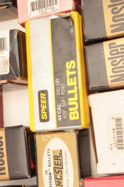 Large lot of misc. caliber bullets, various makers including Nosler, Hornady, Herter’s, etc.; 7mm, .44, .270, etc. Est.: $150-$300.