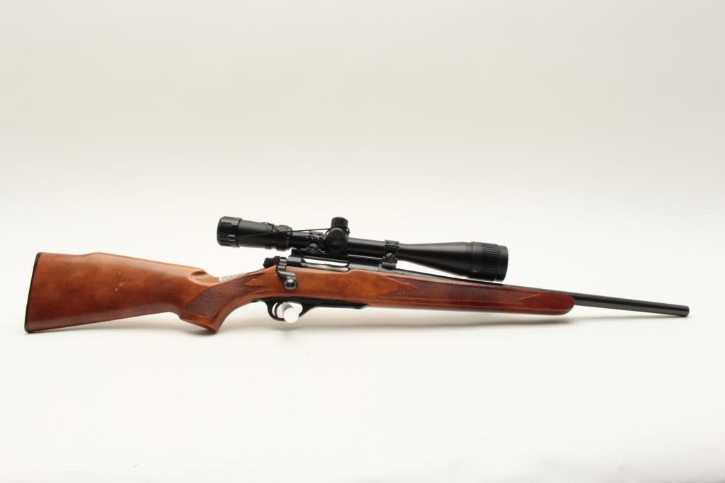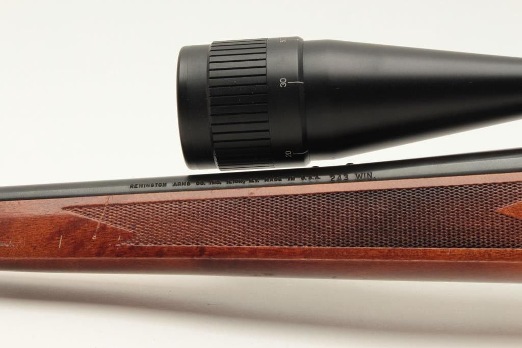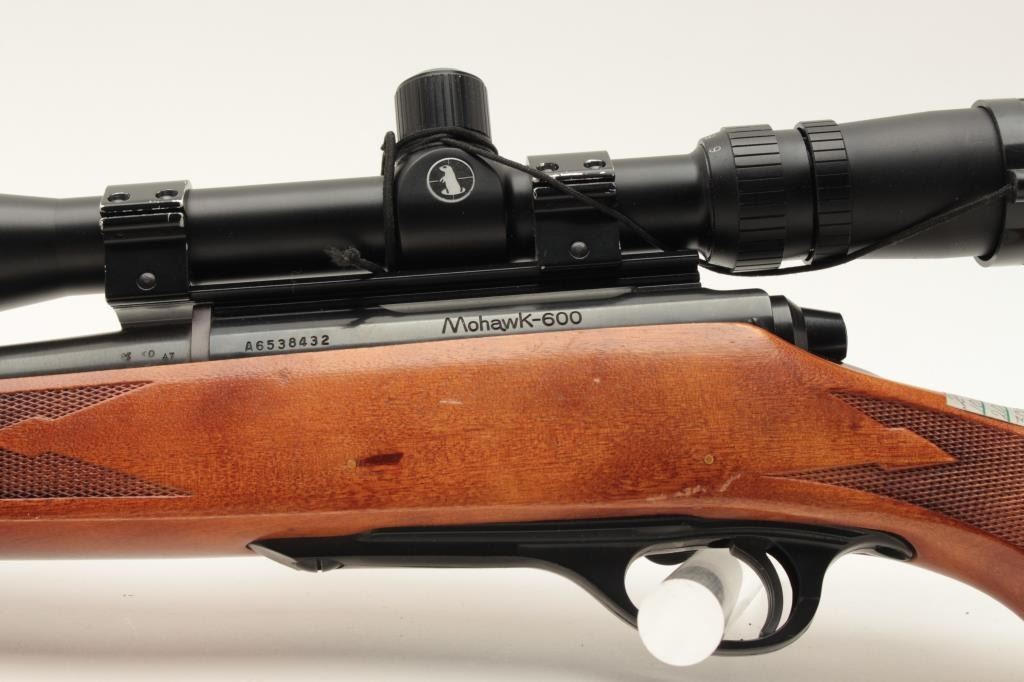 Remington Model Mohawk 600 bolt action rifle, .243 Win. caliber, 18.5” barrel, blued finish, wood stock, S/N A6538432, in overall very good condition with a very good bore, crisp action, sharp markings and majority of Lot Title original finish to metal surfaces; mounted with a Tasco scope displaying good optics. (Modern). Est.: $300-$600.