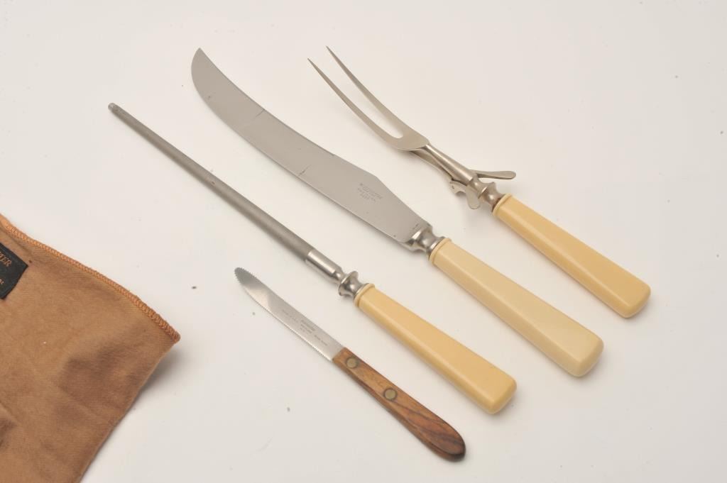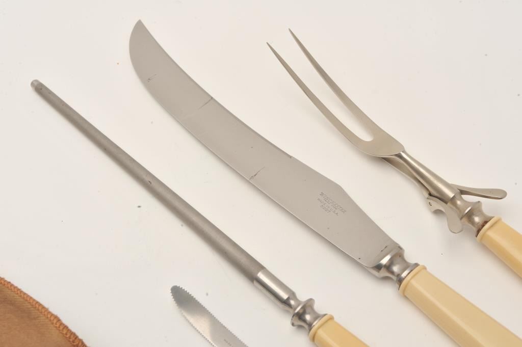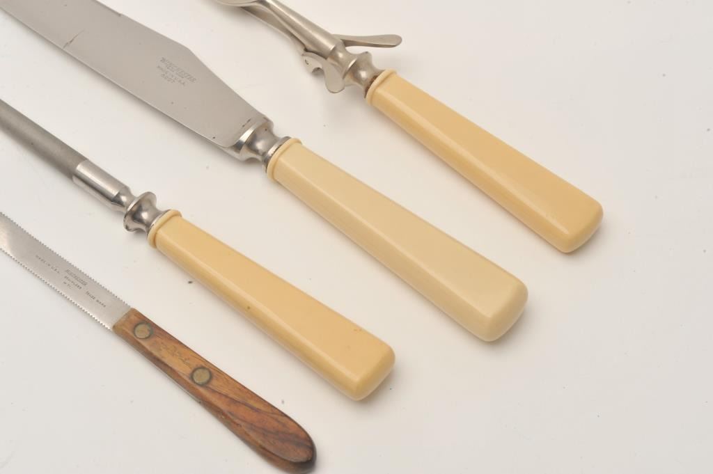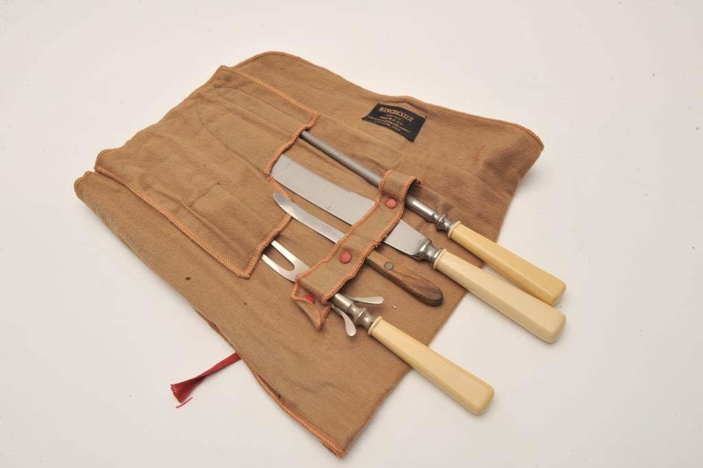 Winchester three piece carving set in cloth bag with Winchester label and extra Winchester grapefruit sectioning knife. Est.: $125-$250.