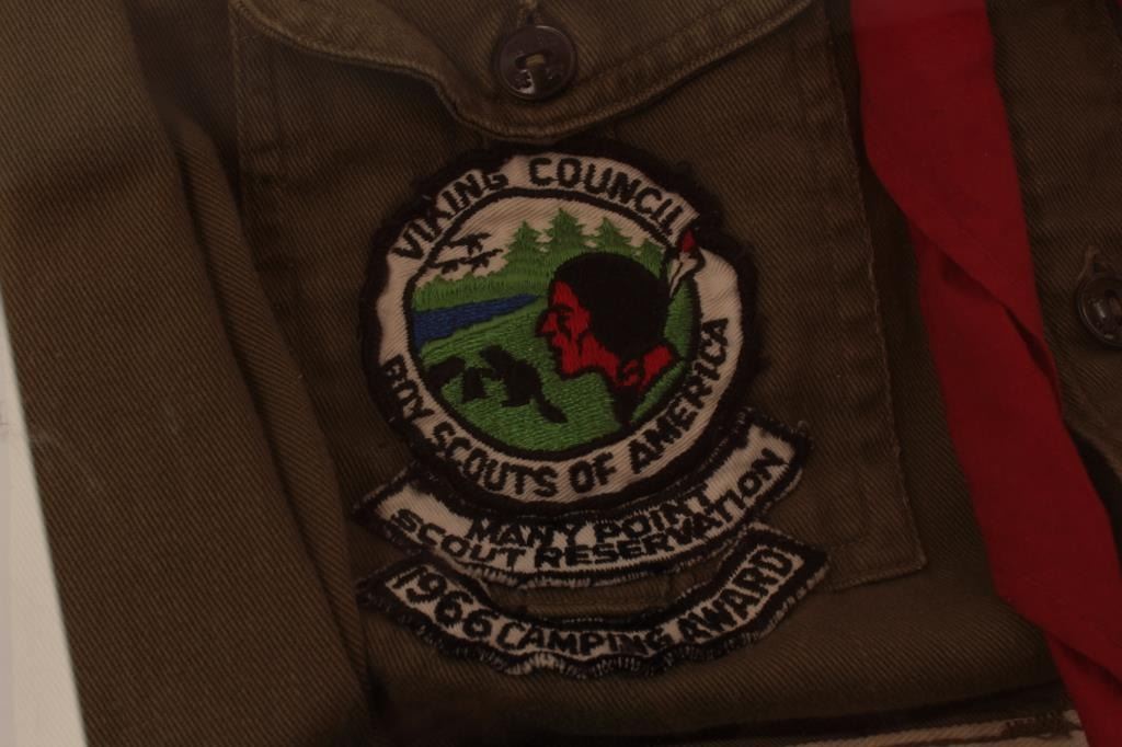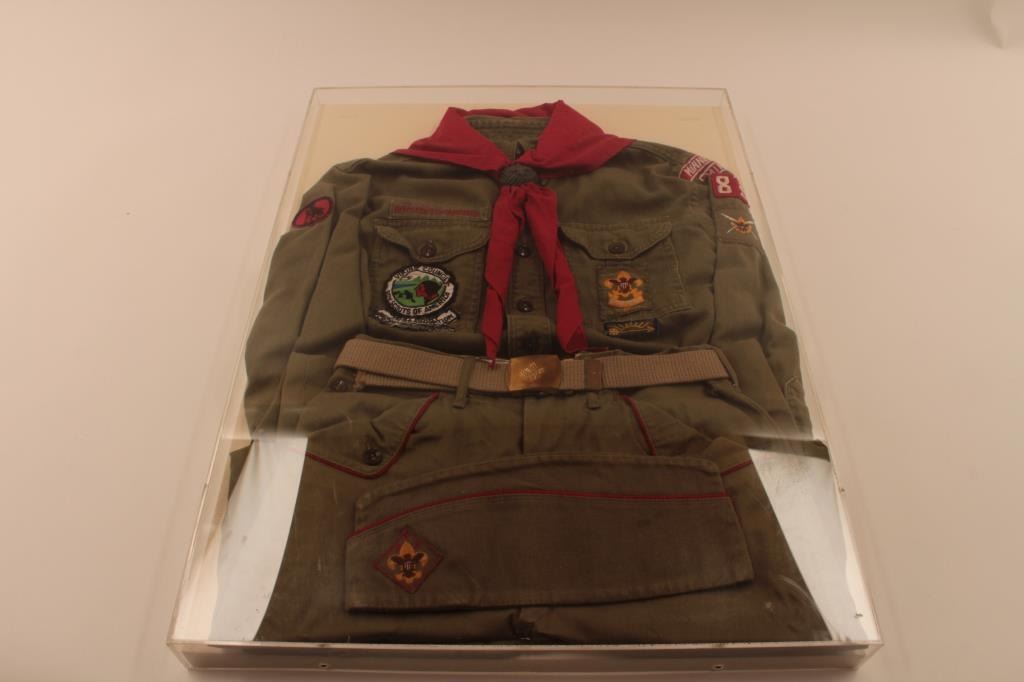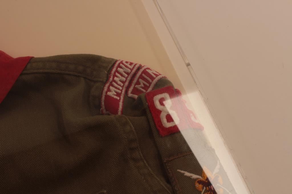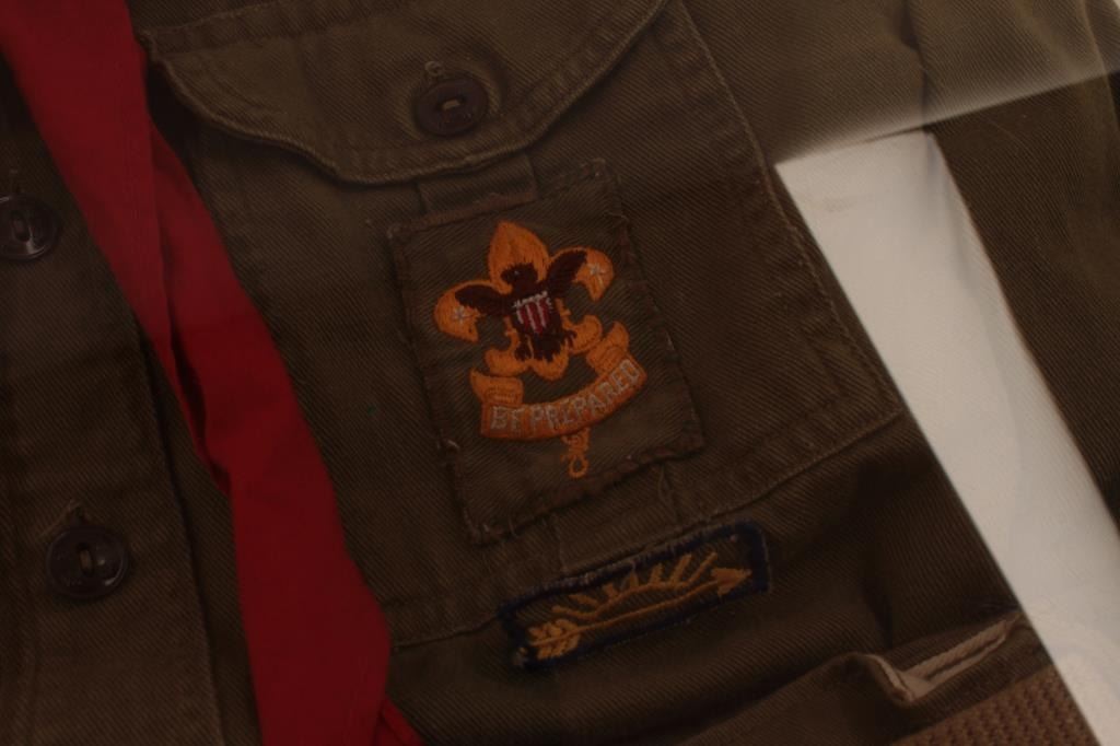 Nicely framed vintage Boy Scouts of America uniform with patches. Est.: $50-$75.