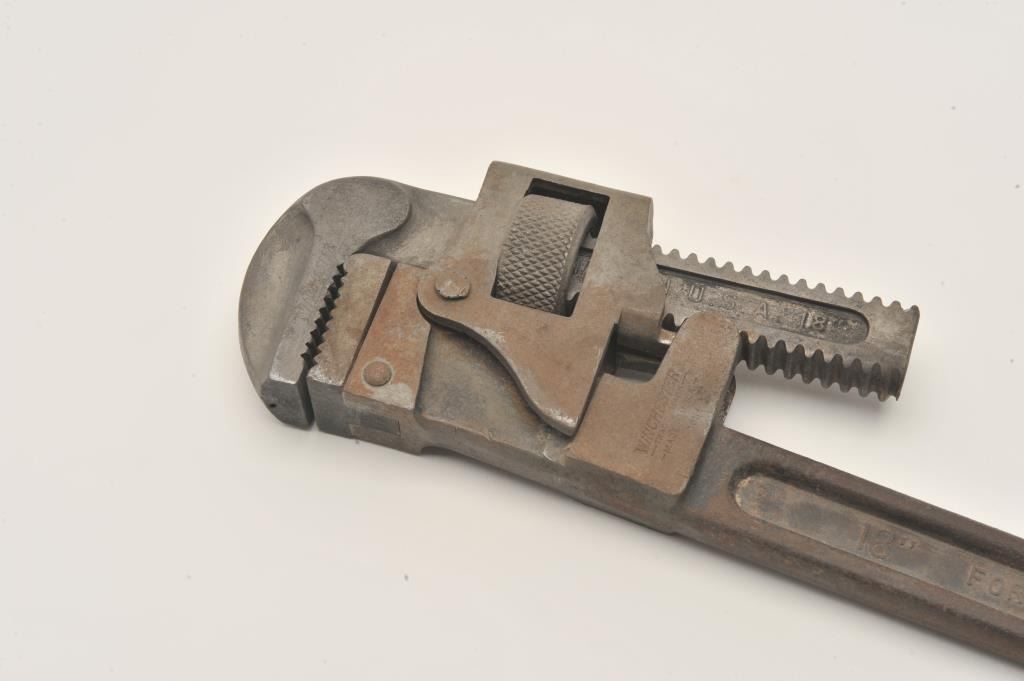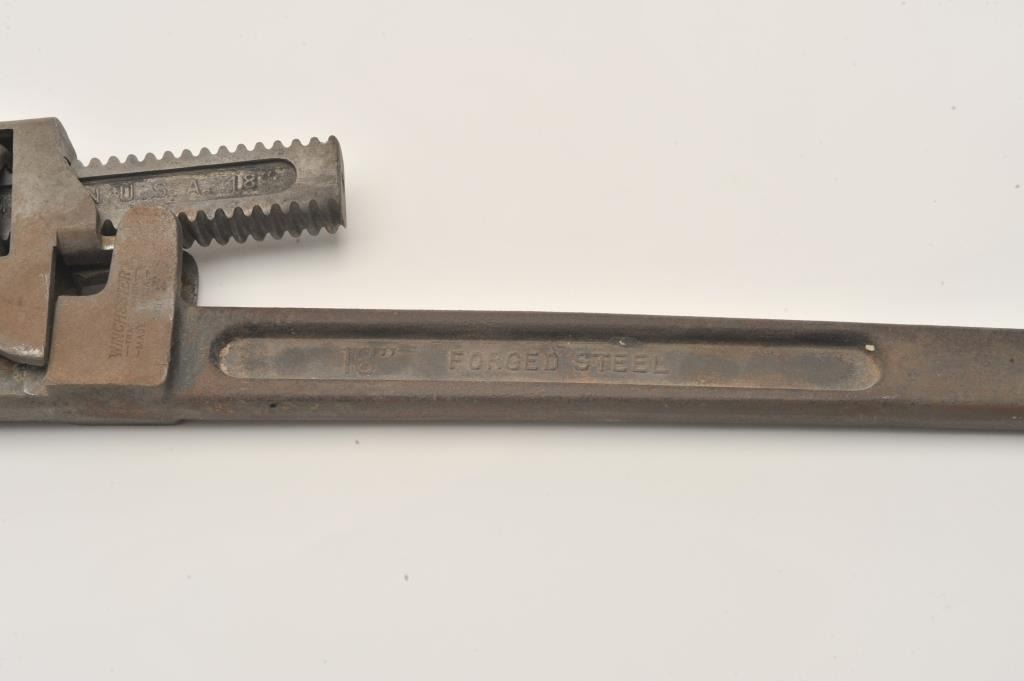 Large Winchester-marked 18” forged steel wrench, approximately 18” overall. Est.: $60-$120