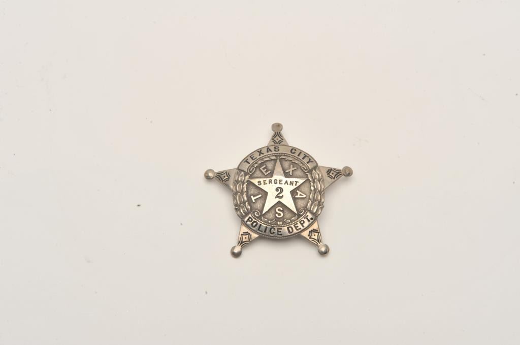 Texas City, TX Police Dept. Sergeant 5 point star badge (2/hallmark LARSCO Products, Los Angeles, Cal). Est.: $300-$600.