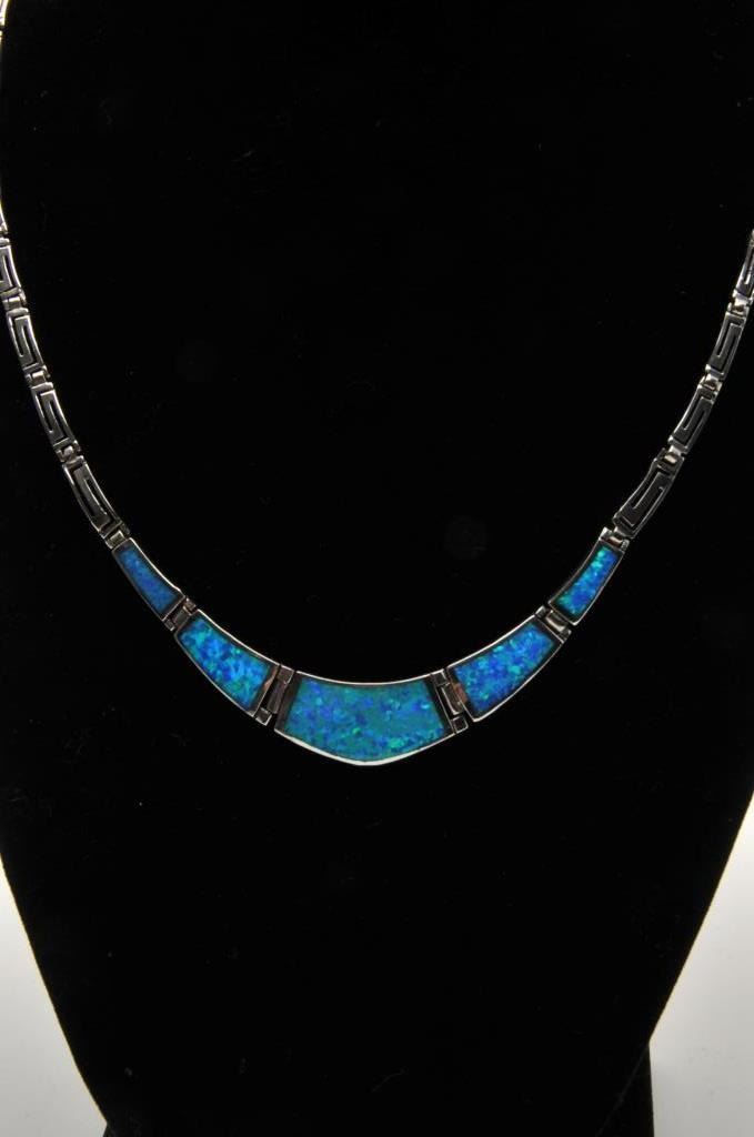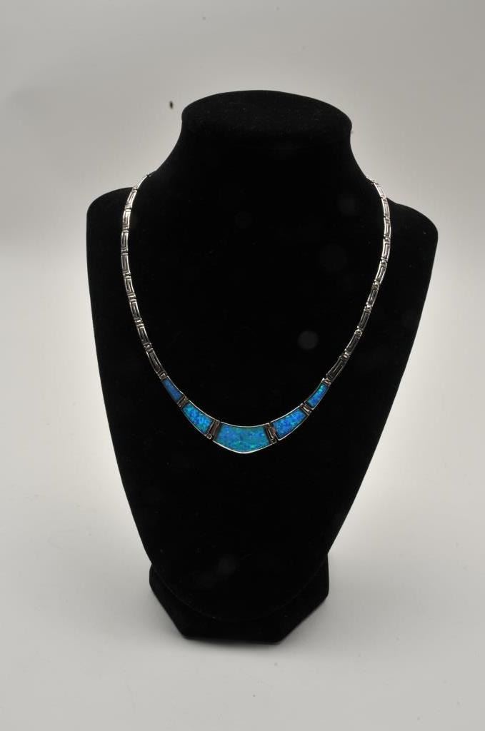 One fine inlay-ed blue opal necklace in sterling silver Est:$150-250