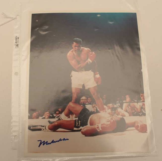 Signed color boxing photo of Muhammad Ali in the ring with Certificate of Authenticity from Derek Heidel of Philadelphia, PA. Est.: $30-$60.