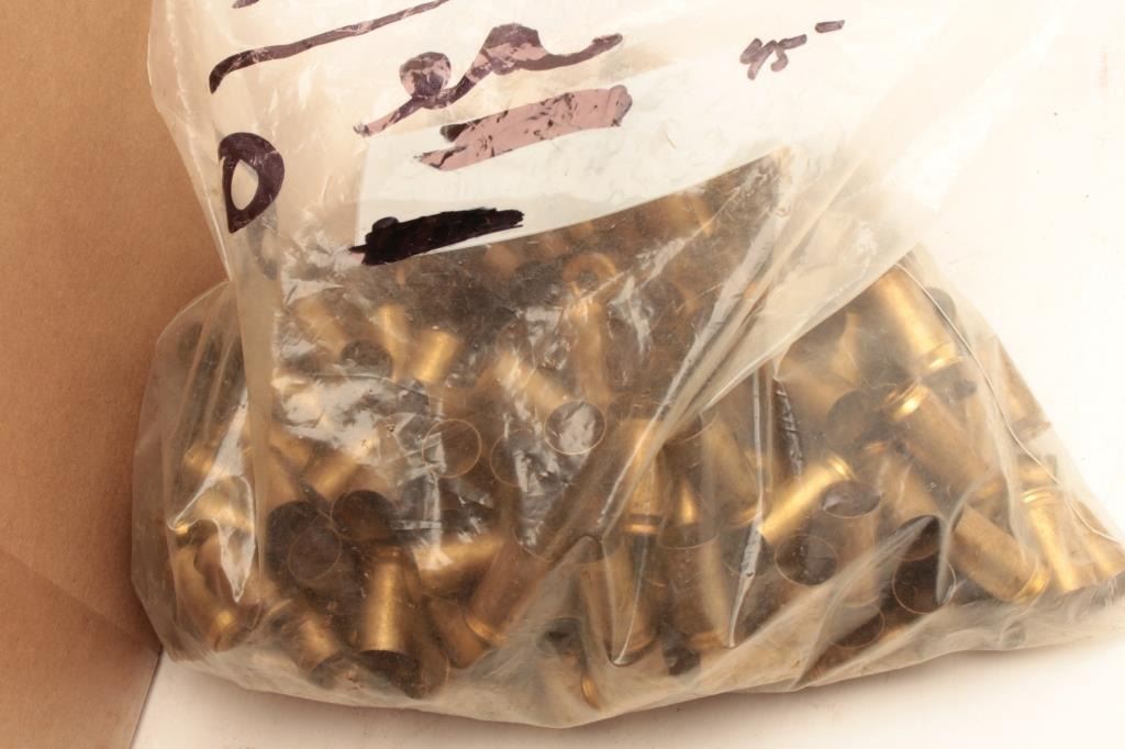 Large lot of brass cases in .38 caliber and .45 auto caliber. Est.: $100-$175.