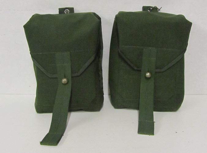 TWO MILITARY STYLE POUCHES WITH ORIGINAL HARNESS AND BELT AS WELL AS AN EXTRA GERMAN HARNESS.