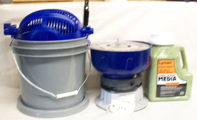 FRANKFORD ARSENAL QUICK-N-EZ TUMBLER, 6 LBS. LYMAN CORN COB MEDIA, PAIL AND SIFTER