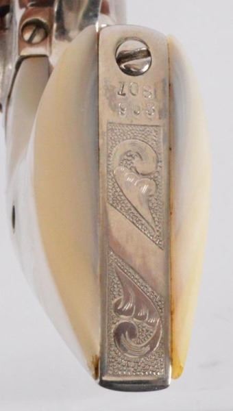 antique 1st gen. black powder. Renickeled & nicely engraved. Made in 1884. Black powder frame. 7-1/2 barrel with Mother of pearl grips.