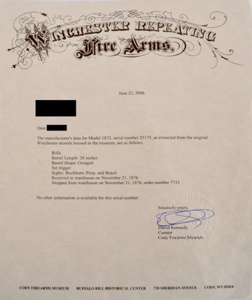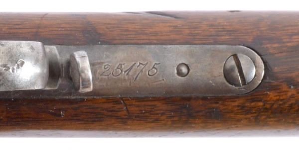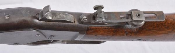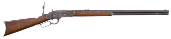 Wonderful, original, 1st model. 28" Octagon Barrel, set trigger. Buckhorn, peep and beach sights. Shipped November 21, 1876. Comes with factory letter. S/N 25175