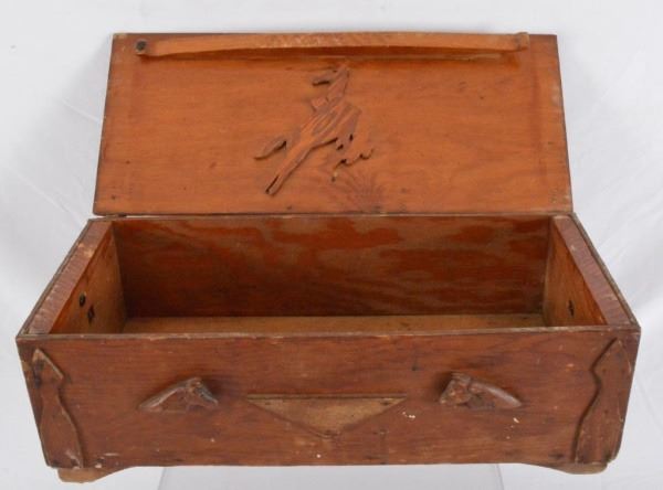 Lot 279 Vintage Western Folk Art Carved Wooden Box