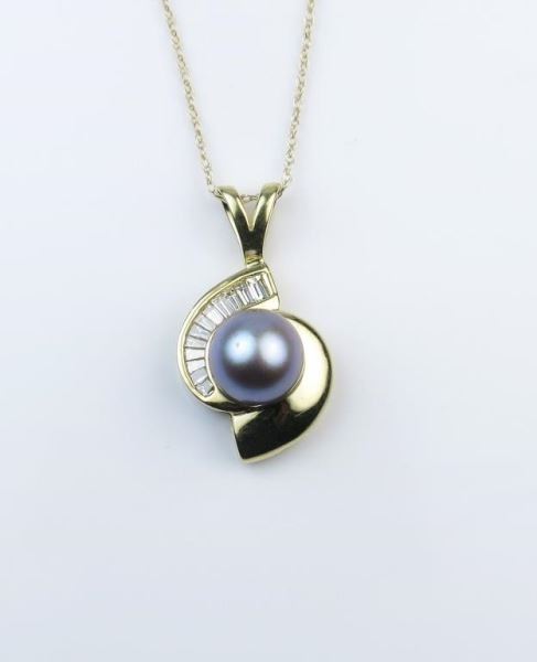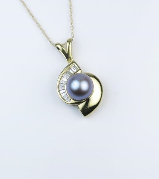Lot 670 Elegant Fine Black Pearl & Diamond Pendant