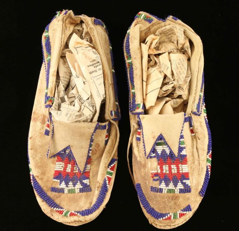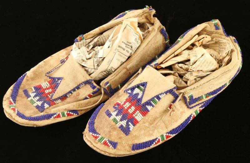 Lot 865a Plains Indian Leather Beaded Moccasins