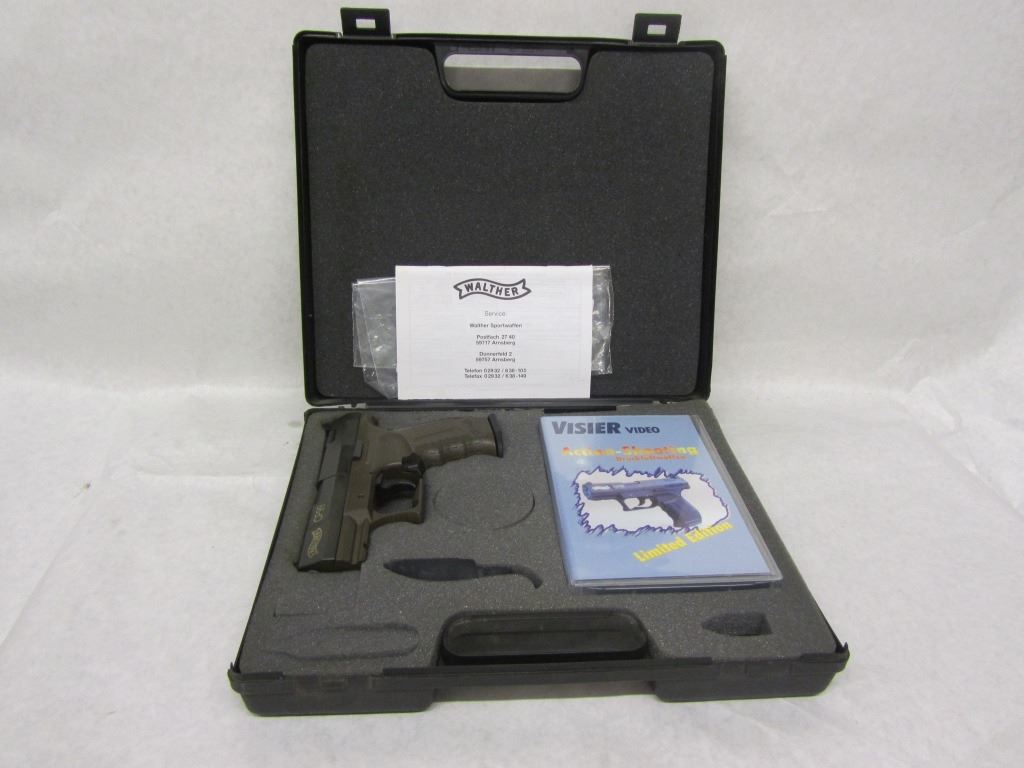 WALTHER CP99 .177CAL AIR PISTOL IN CARRYING CASE WITH VHS INSTRUCTION TAPE AND PAPER MANUAL.