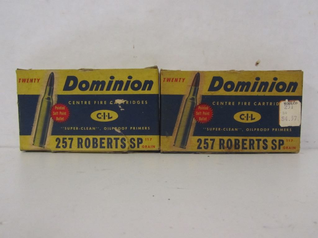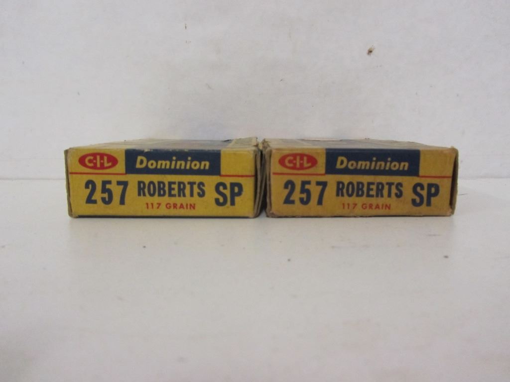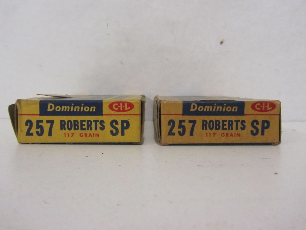 32 RNDS OF 257 ROBERTS 117GR AND 8 PIECES OF BRASS IN TWO C-I-L DOMINION BOXES