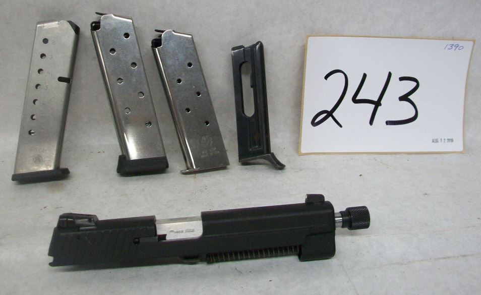 SIG SAUER 22LR COMPLETE UPPER, 2 RUGER 1911 45 ACP MAGS, 1 S&W 45 ACP MAG, 1 BERETTA .22LR SEMI PISTOL MAG.