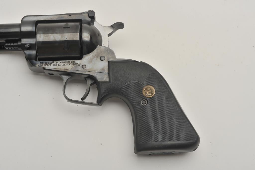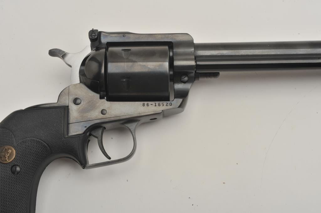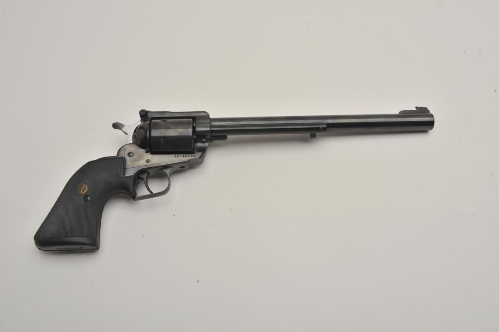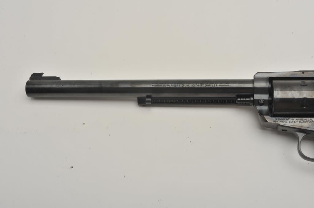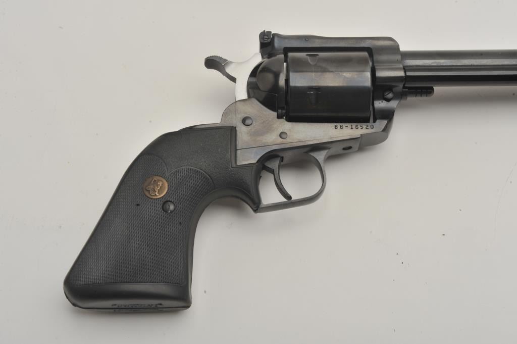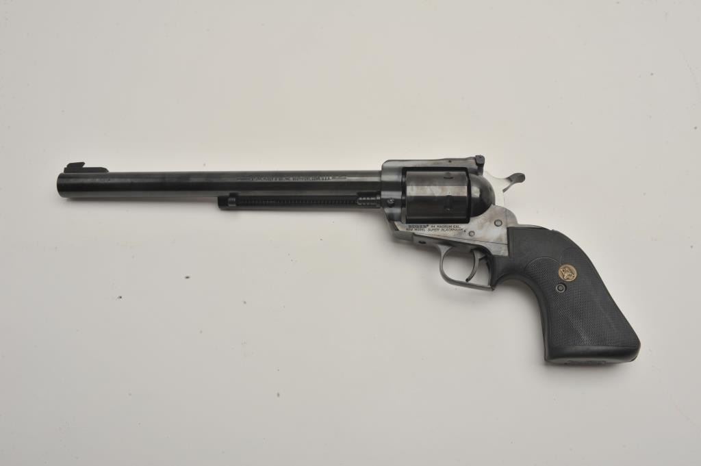 Ruger Blackhawk 44 mag caliber SA with 10 ½ inch barrel catalog number S411N, near good to fine used condition, 2 sets of grips, 1 factory 1 replacement, (PPT) Est:$350-700