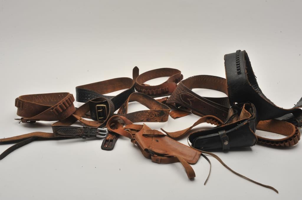 Bonanza lot of gun belts, cartridges belt, same brown belts LTC. Mostly 50 years old or older. Est:$50-100