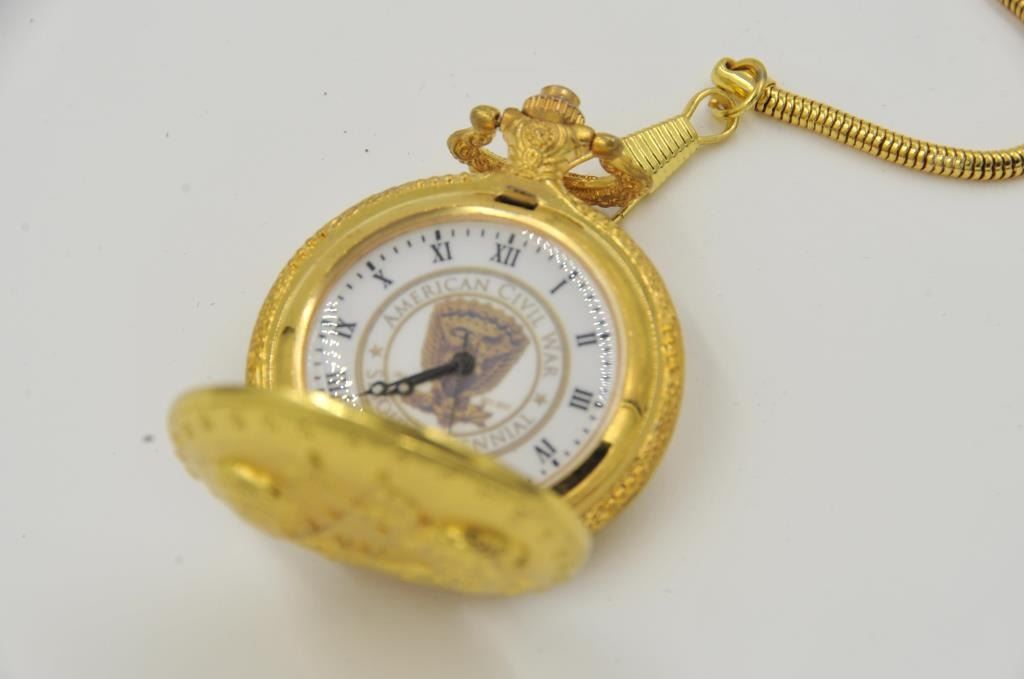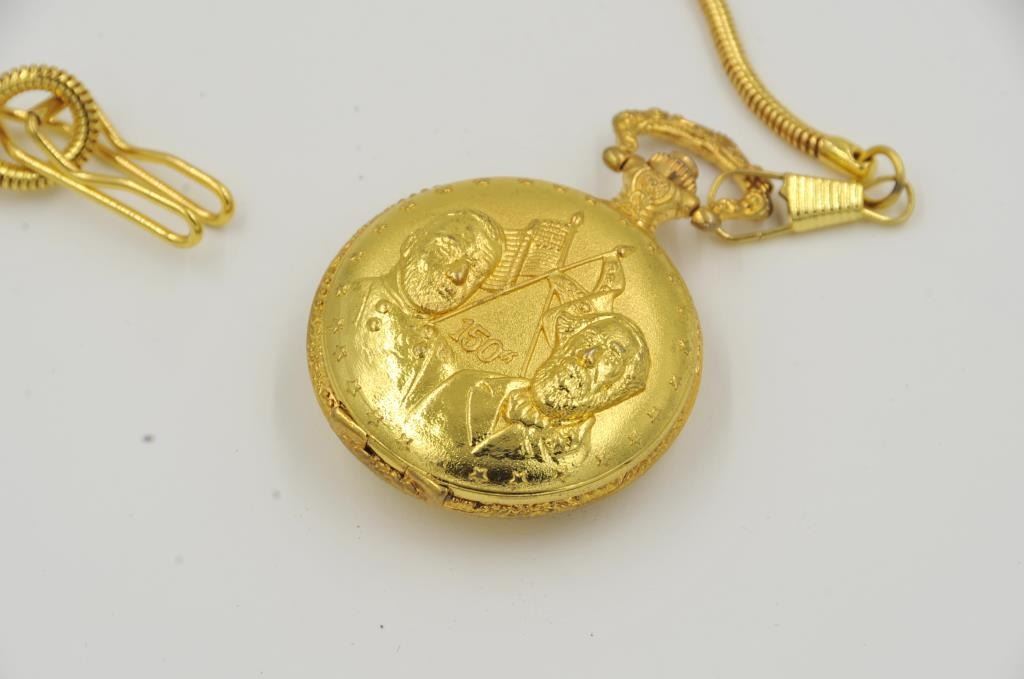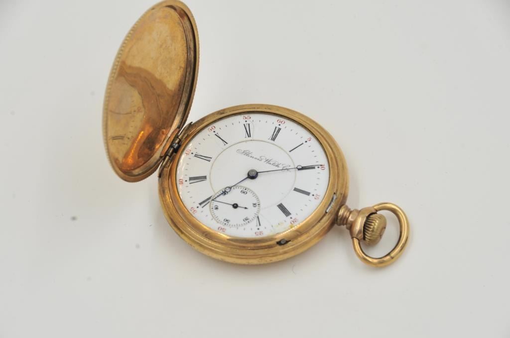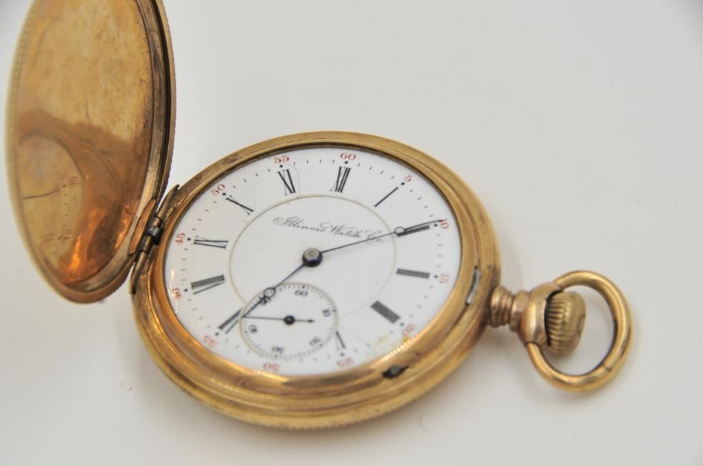 Illinois pocket watch G.F. Hunt case with broken crystal not running GOF locket antique and C.W. commemorative watch. Est:$100-200