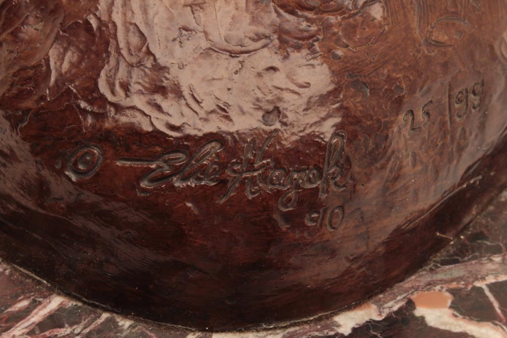 High Quality original bronze of mountain man with Kentucky style rifle signed Elie Hazak, #25 of 99 Excellent finish and patina authentic to detail note fringe on jacket. The era of Jeremiah Johnson and the mountainmen. 28” in height not including mantle base 18 ½ inch widest points .Est:$5000-10,000