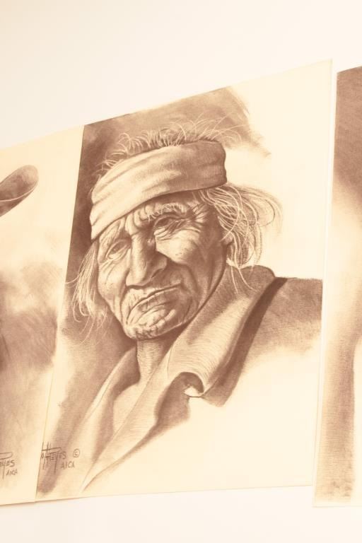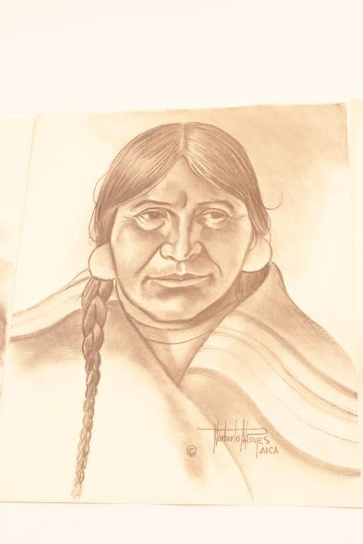 Lot of 5 sepia tone Western prints of 3 Native Americans, a cowboy and a military man, each approximately 20” x 16” by noted AICA artist Norberto Reyes; would make a great series for the Western-theme room oncematted and framed. Est.: $150-$250.