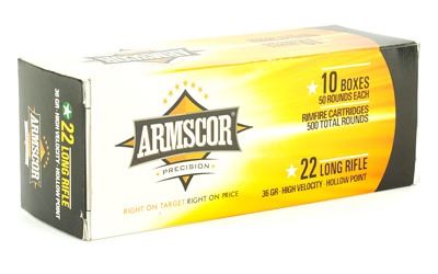 Armscor, Ammo, 22LR, 36Gr, Hollow Point, Hi-Velocity, 500 Round Brick
