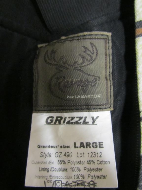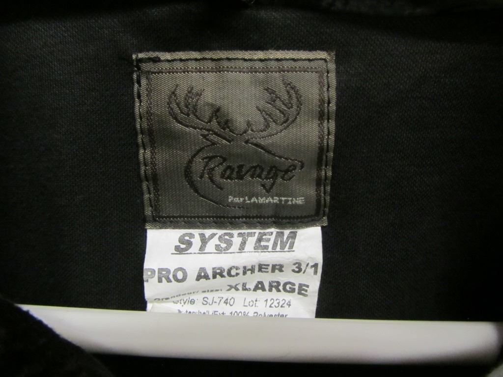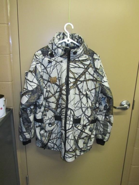 RAVAGE PRO ARCHER 3/1 SNOW CAMO COAT SIZE XLARGE, RAVAGE GRIZZLY SIZE LARGE SNOW PANTS.