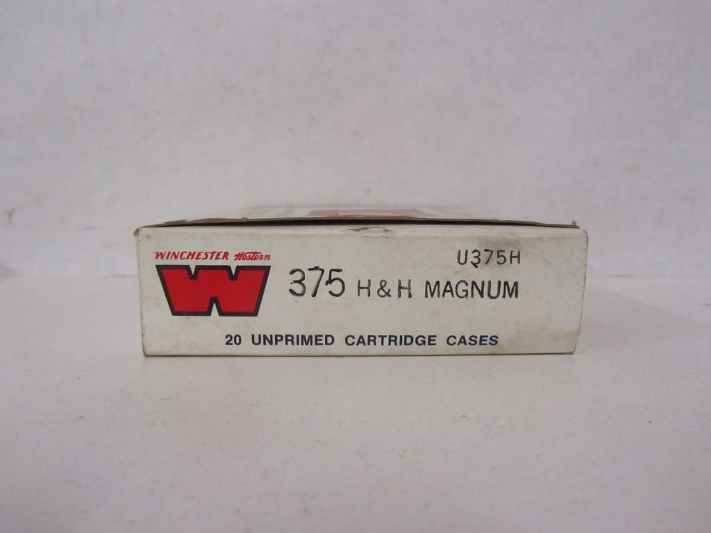 ONE WINCHESTER WESTERN 375 H&H MAGNUM BOX WITH 2 PIECES OF 375 H&H MAGNUM BRASS