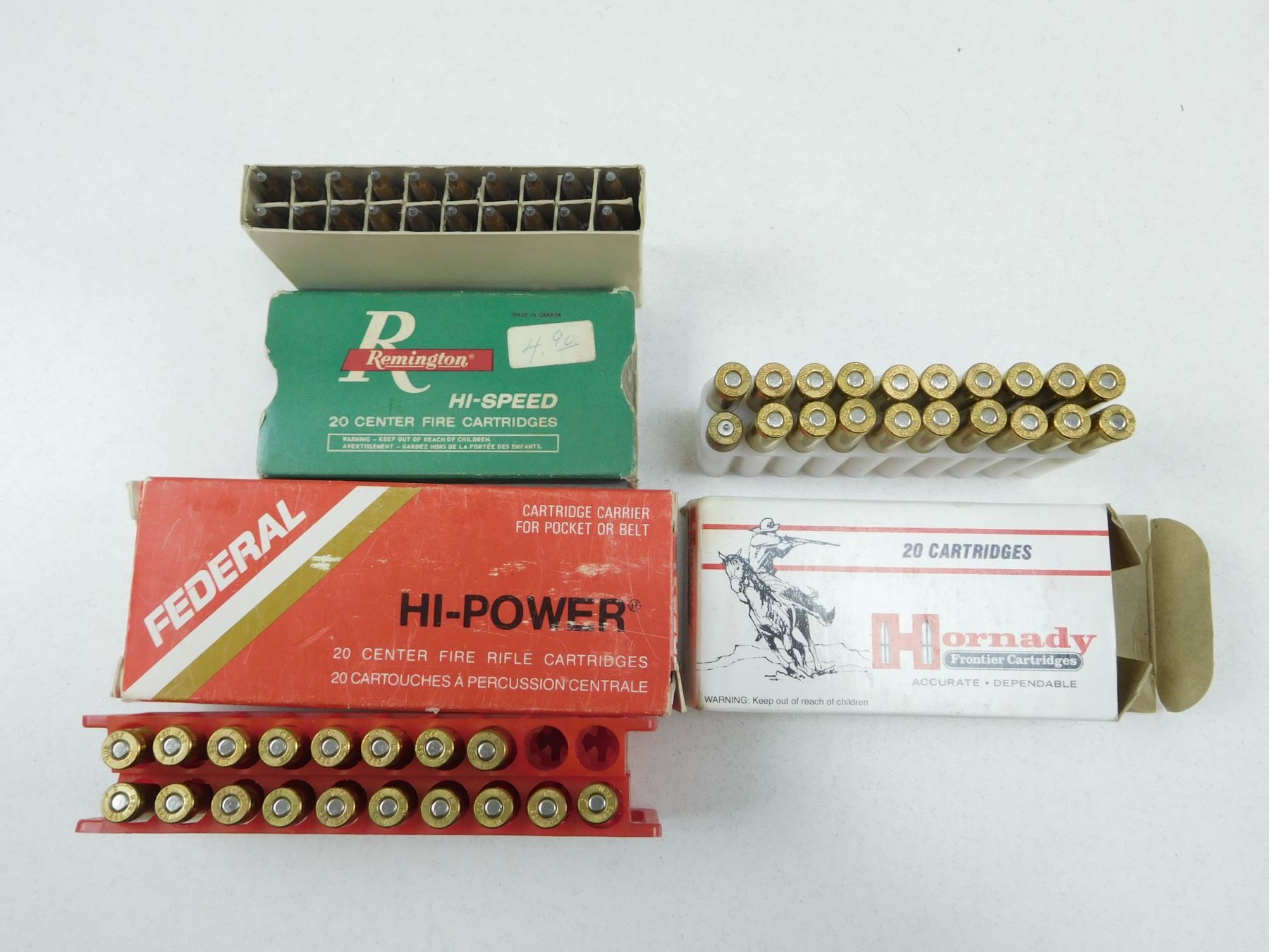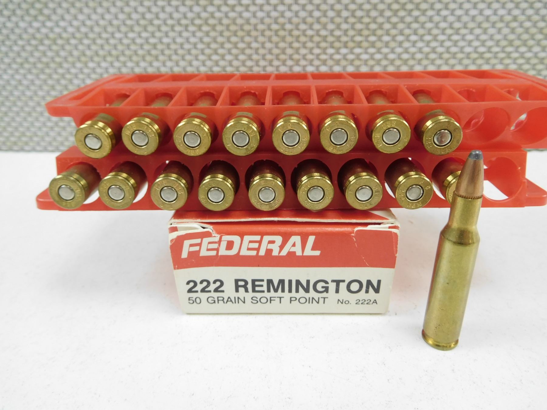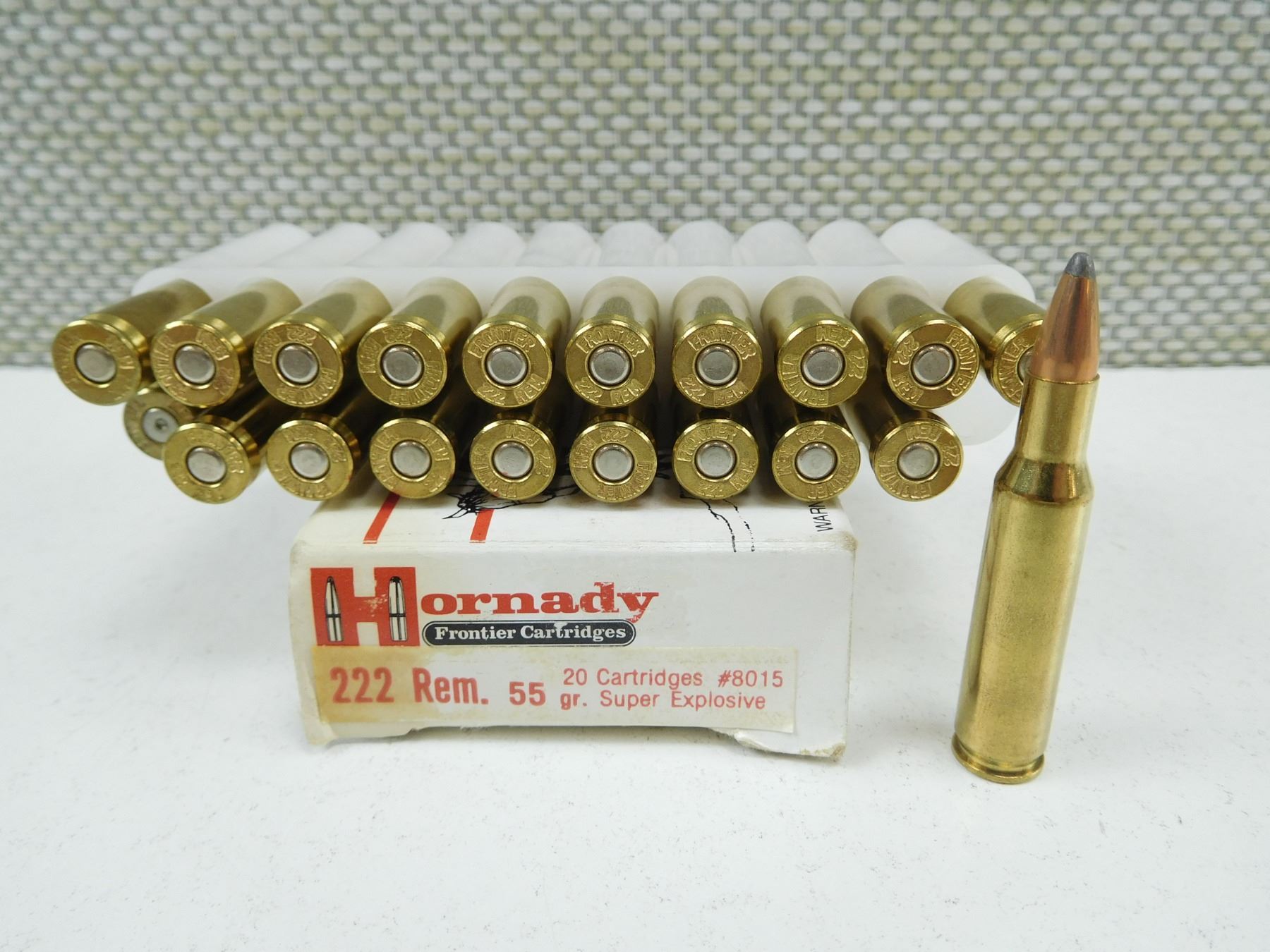 ASSORTED 222 REMINGTON AMMO , 57 RNDS INCLUDES REMINGTON, HORNDAY 55 GRAIN SUPER EXPLOSIVE, & FEDERAL 50 GRAIN SP