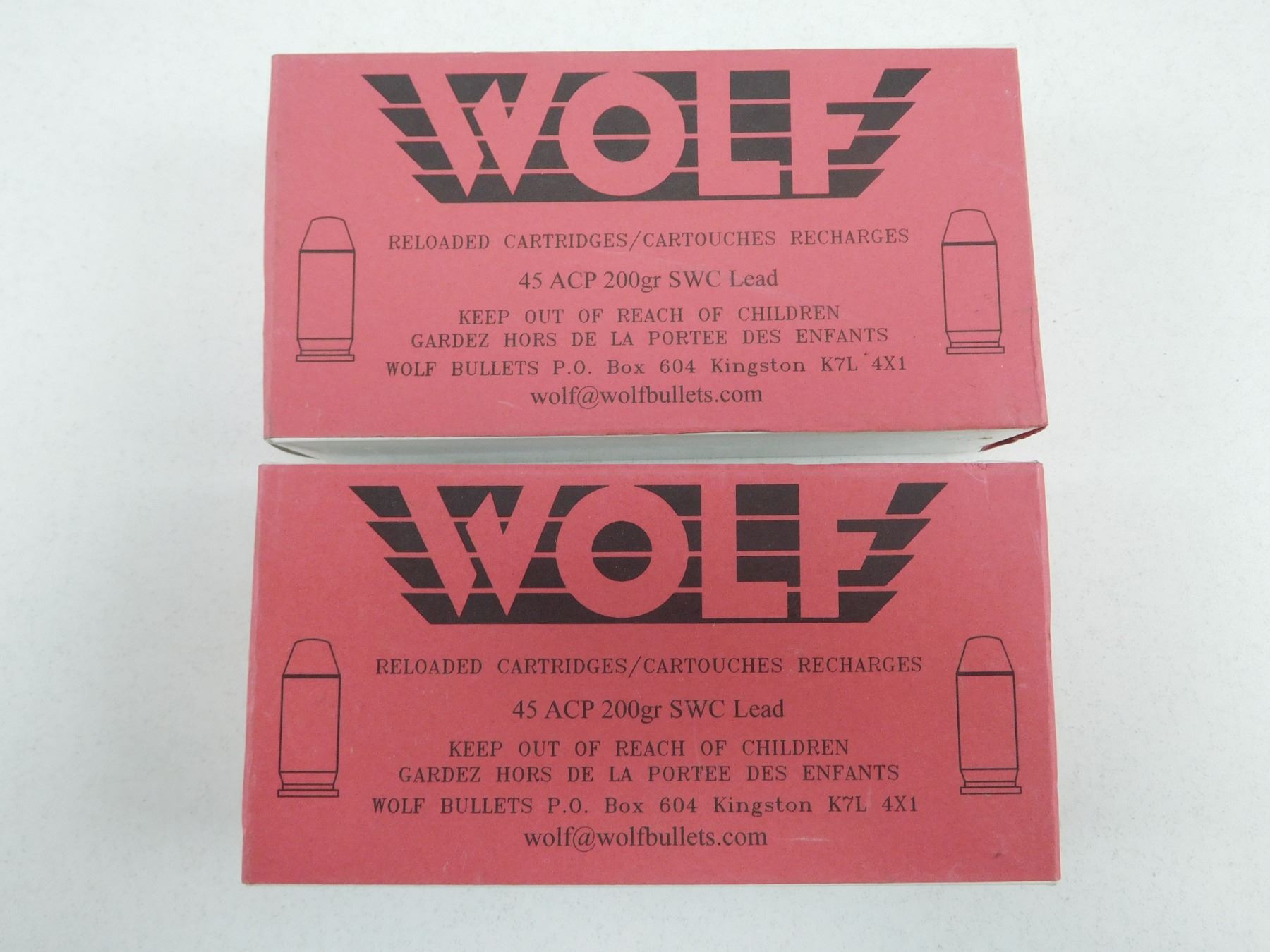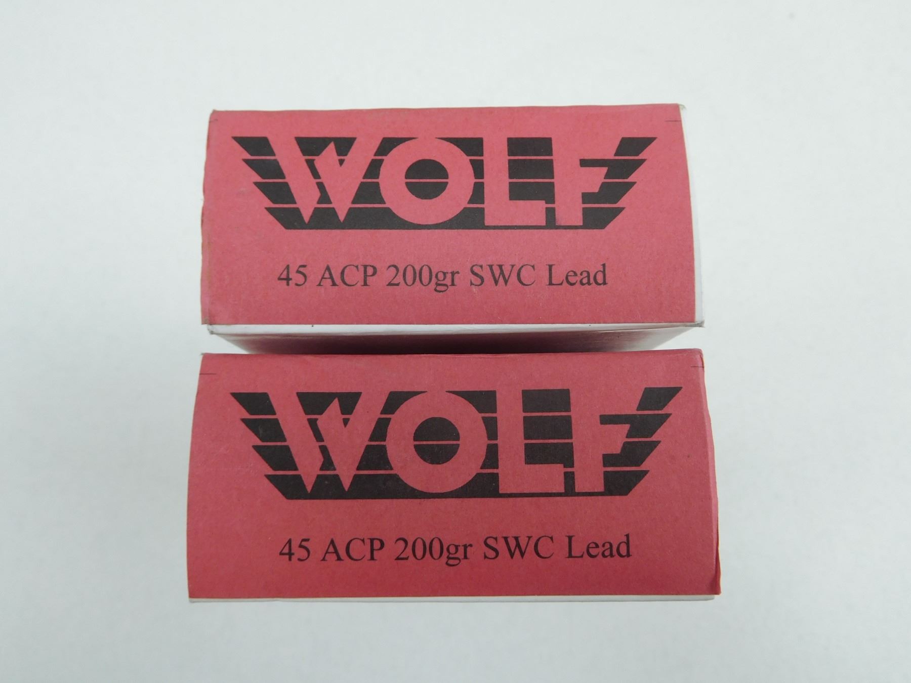 WOLF 45 ACP RELOADS , 100 RNDS 200 GRAIN SWC, UNOPENED