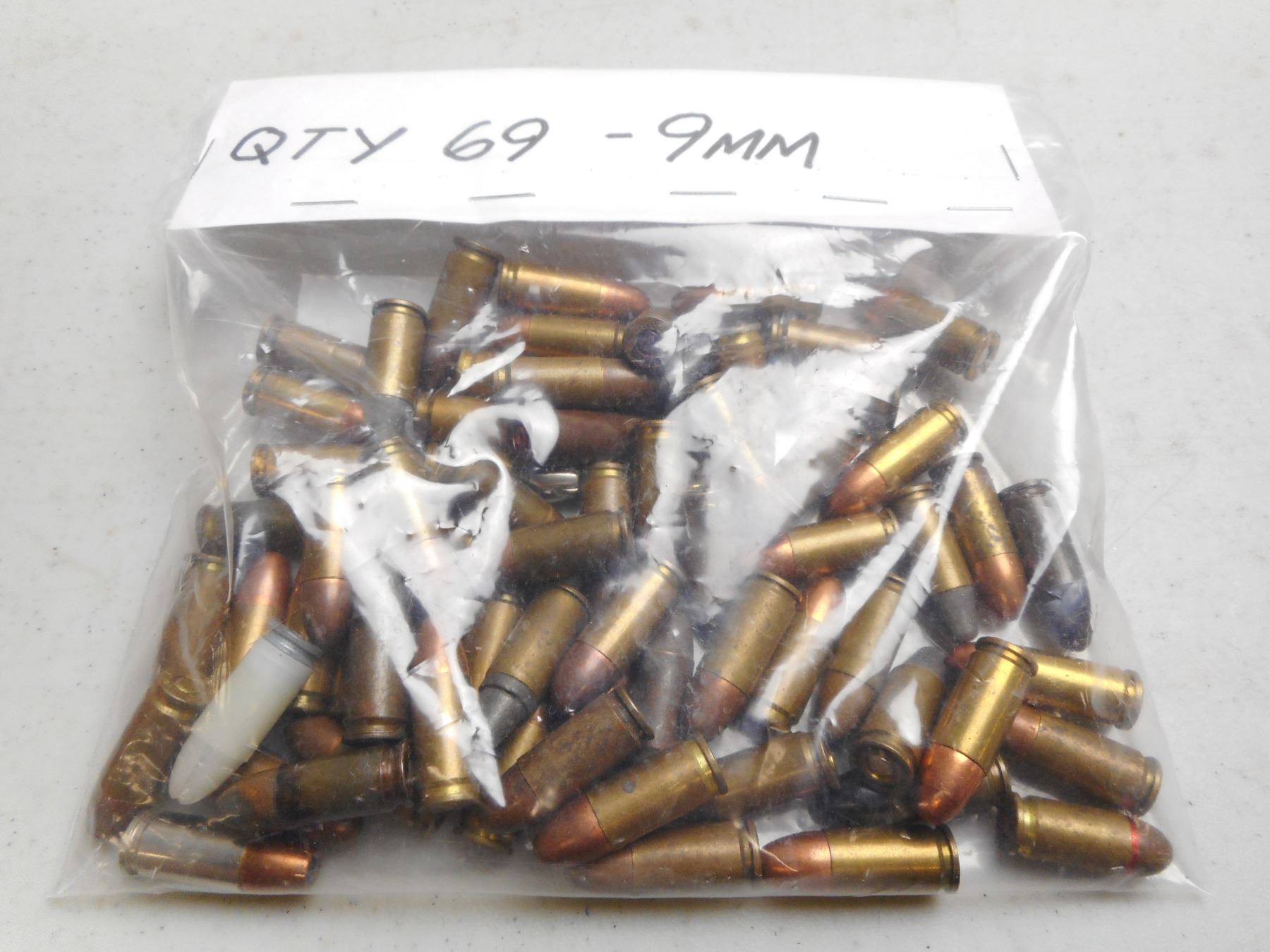 ASSORTED 9MM AMMO , APPROX 69 RNDS, LOOSE