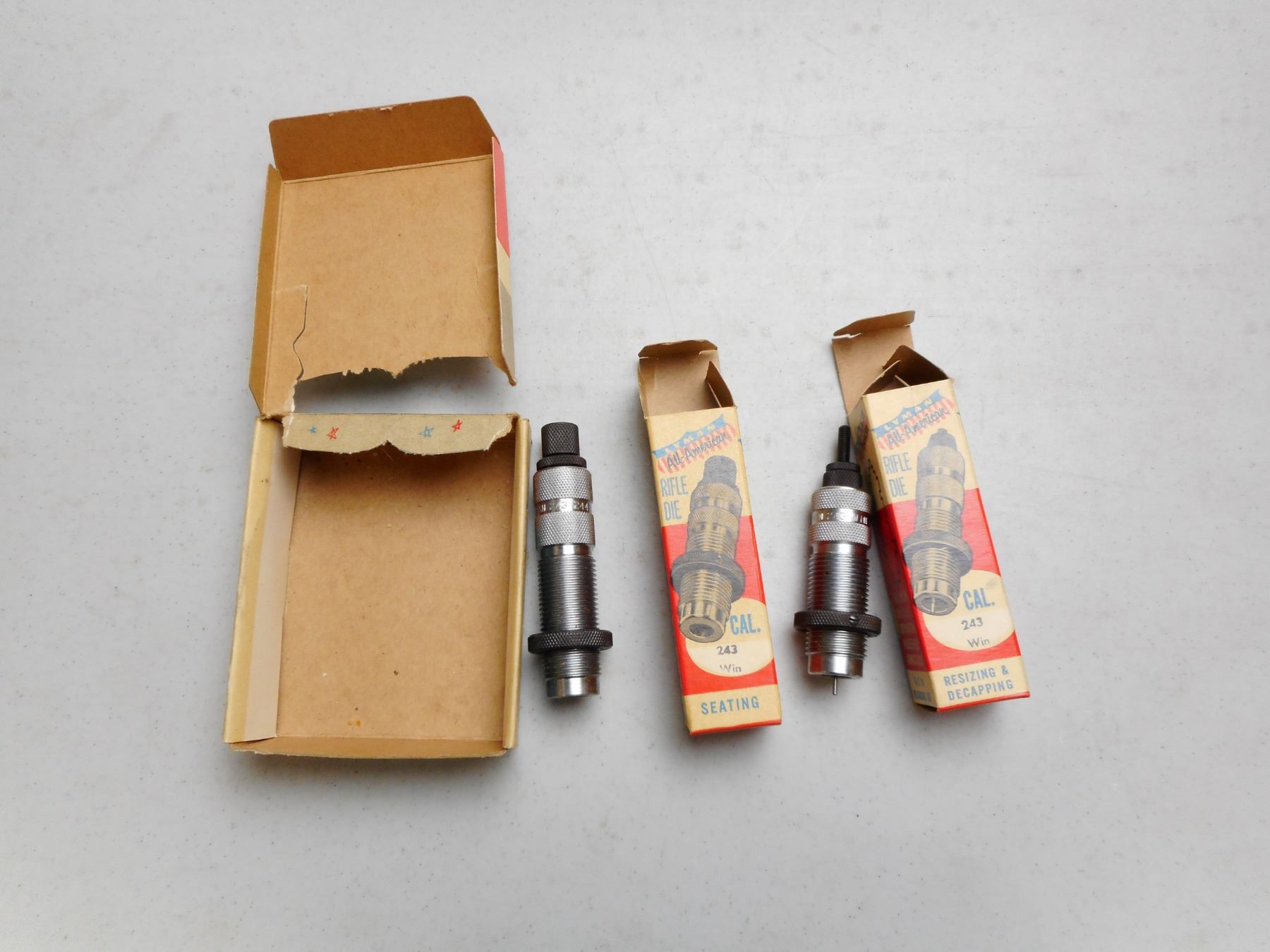 VINTAGE LYMAN ALL AMERICAN RIFLE DIES , 243 WIN, IN ORIGINAL BOXES LOT OF 2
