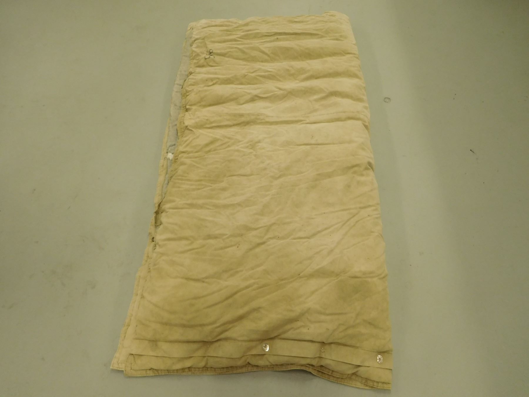 MILITARY ARCTIC SLEEPING BAG , IS TORN WITH STAINS APPROX SIZE 75 X 75" MARKED 56