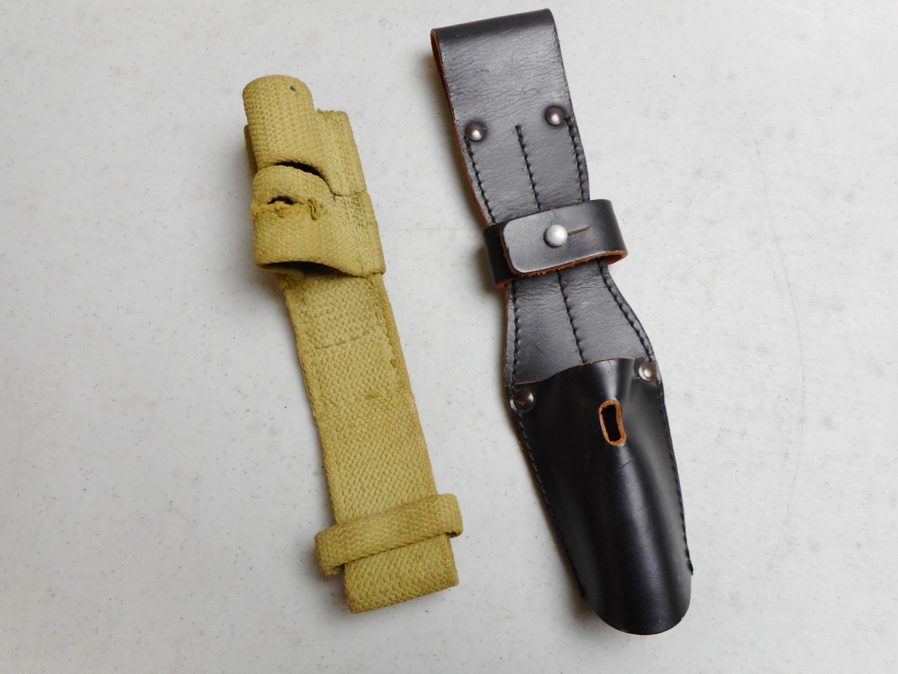 MILITARY BAYONET FROGS , (1) ORIGINAL WWII ERA (1) REPRODUCTION K98, LOT OF 2