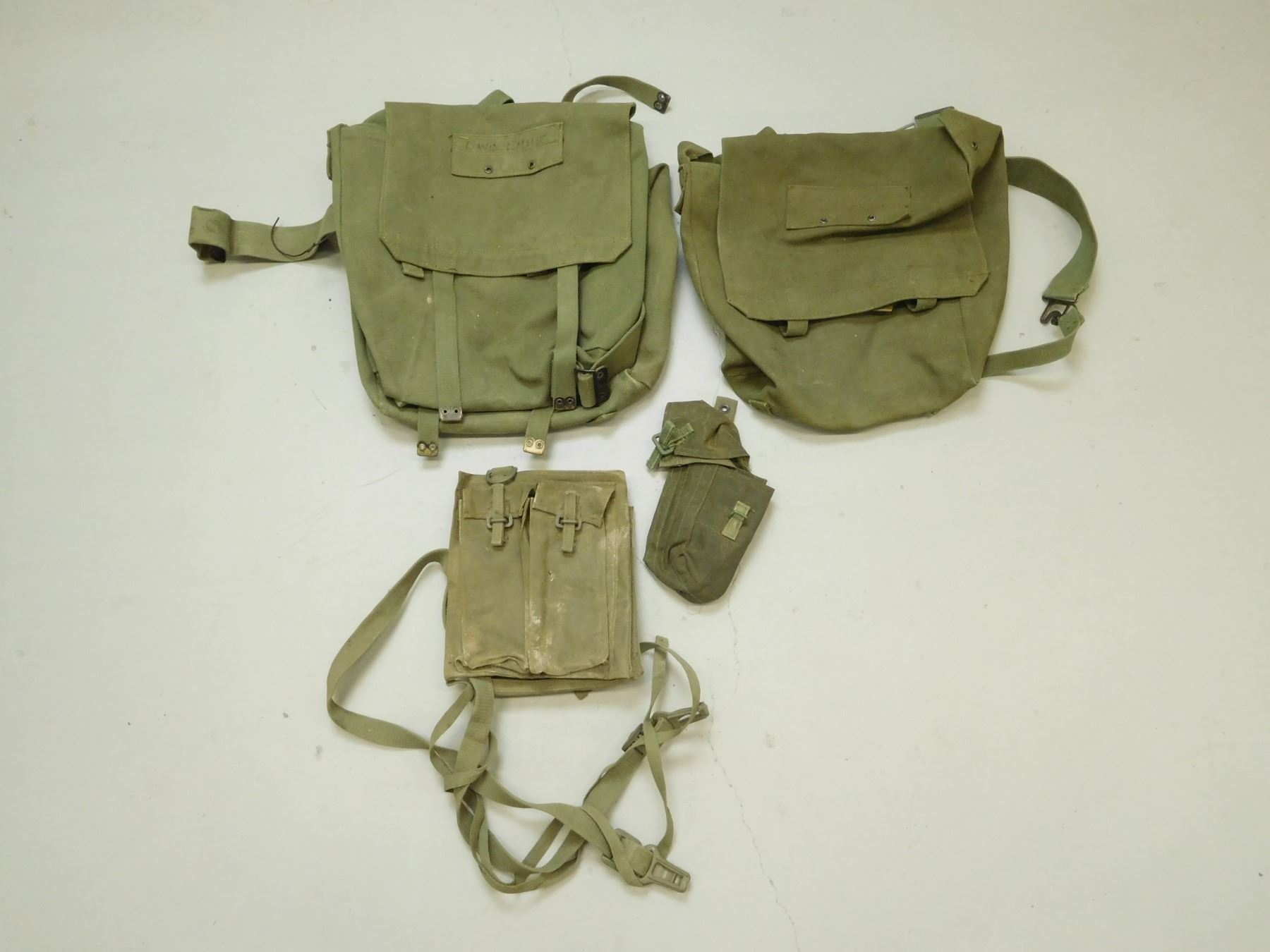 ASSORTED MILITARY SATCHELS & POUCHES , (3) GREEN SATCHELS, (2) POUCHES