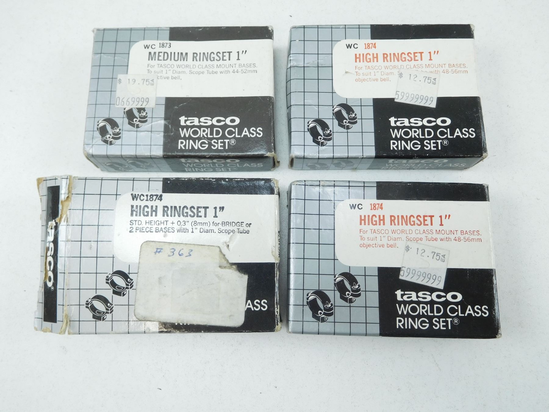 TASCO WORLD CLASS RINGS , INCLUDES HIGH & MEDIUM, IN BOXES, LOT OF 4