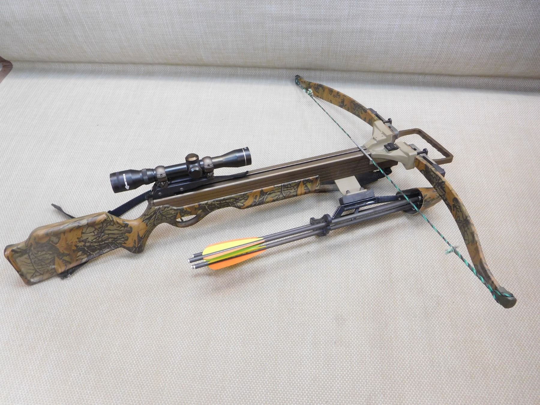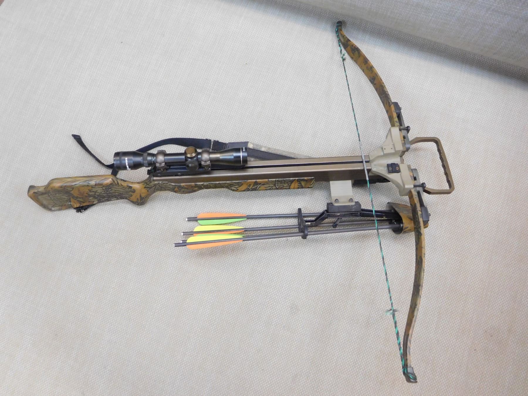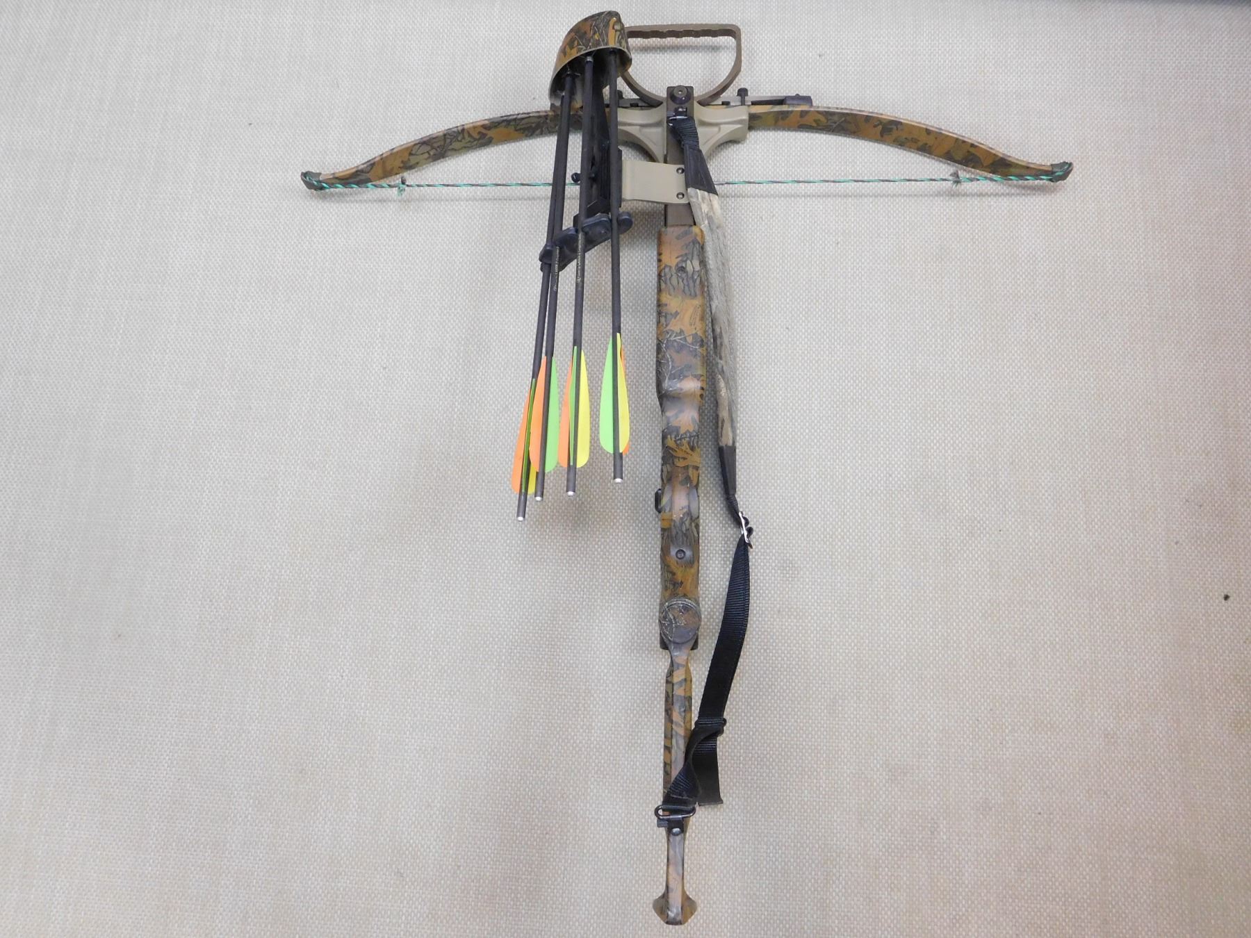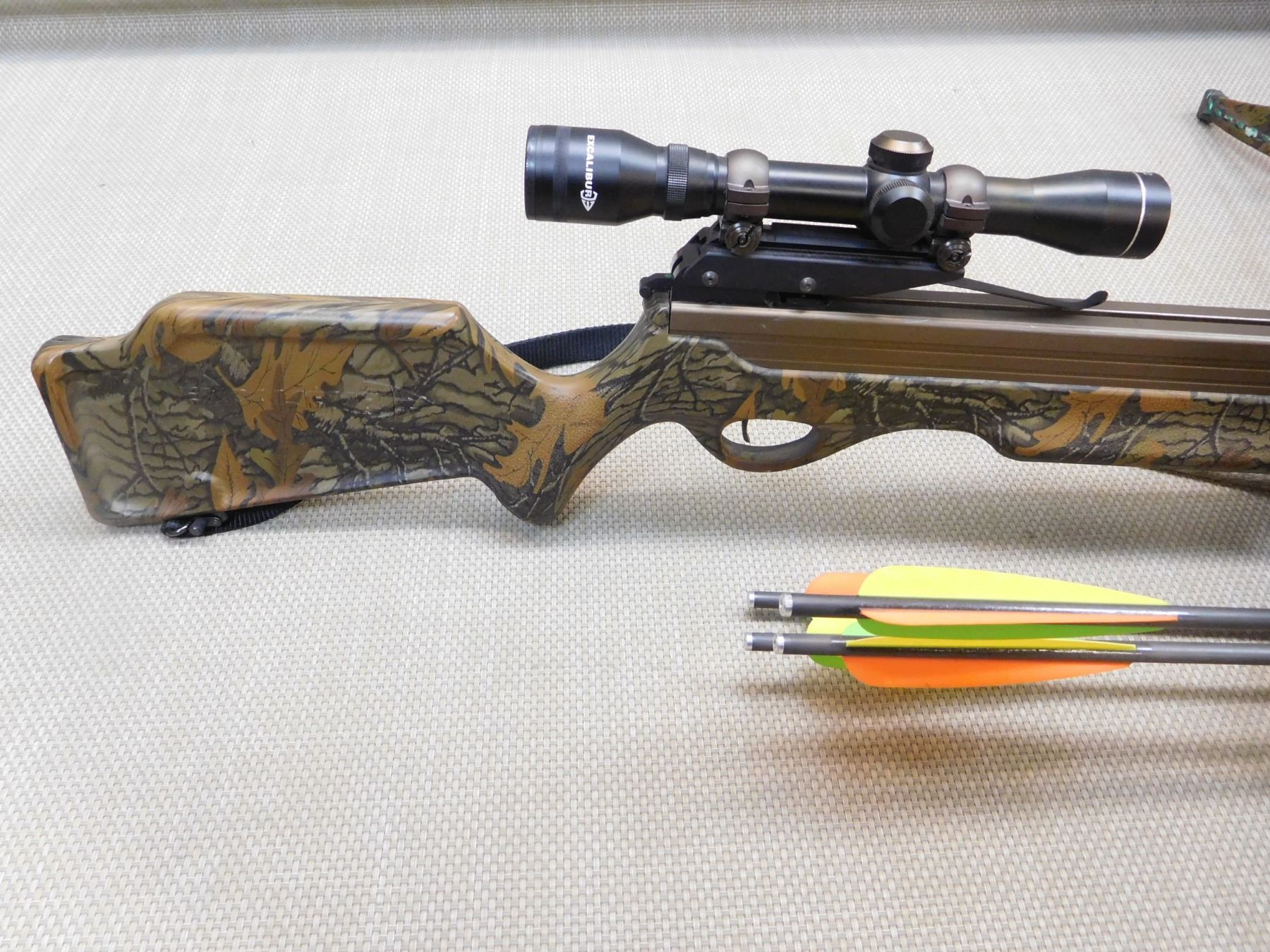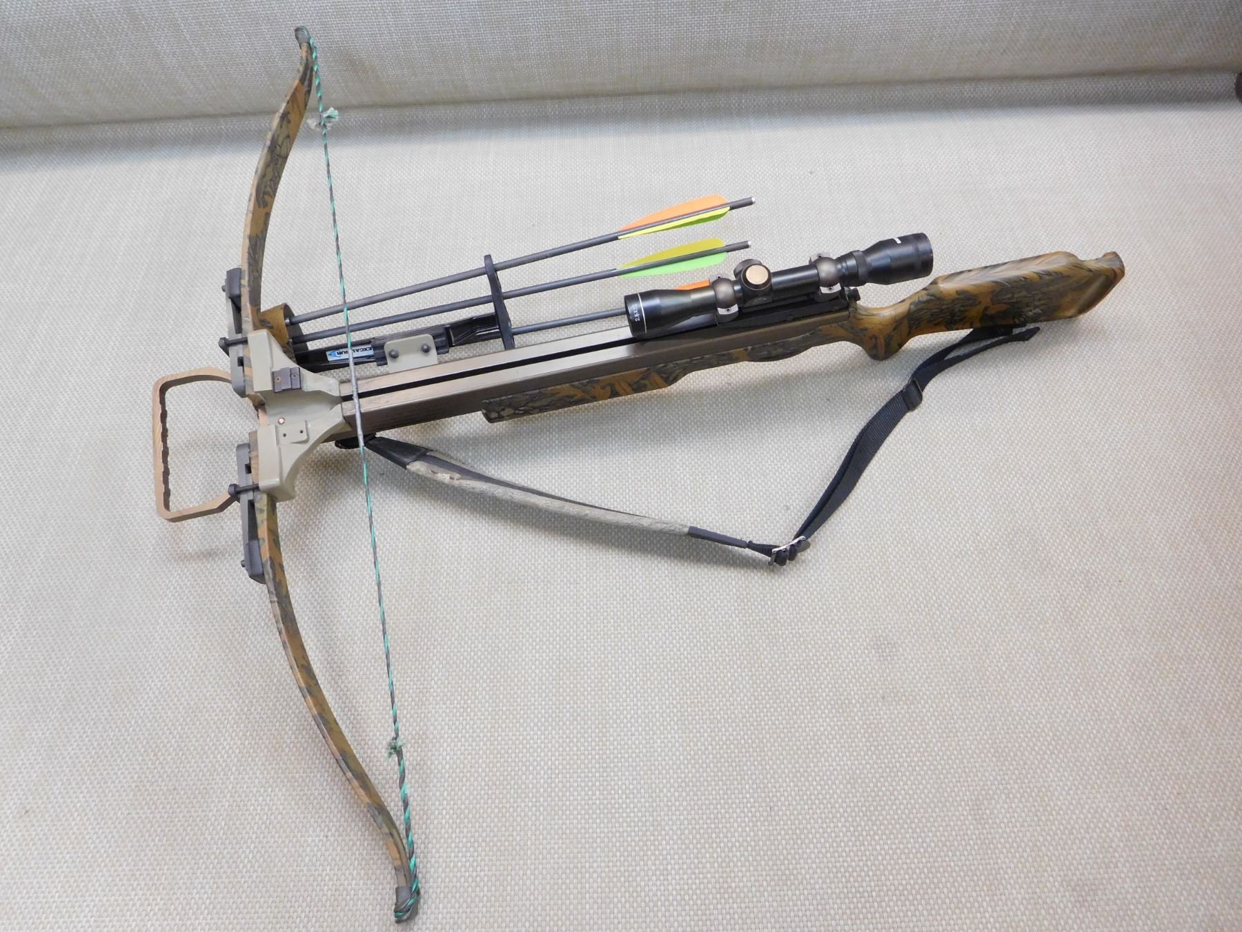 EXCALIBUR CROSSBOW EXOMAG , CAMO FINISH WITH 2.5 X 35 SCOPE, SLING, QUIVER & 4 ARROWS