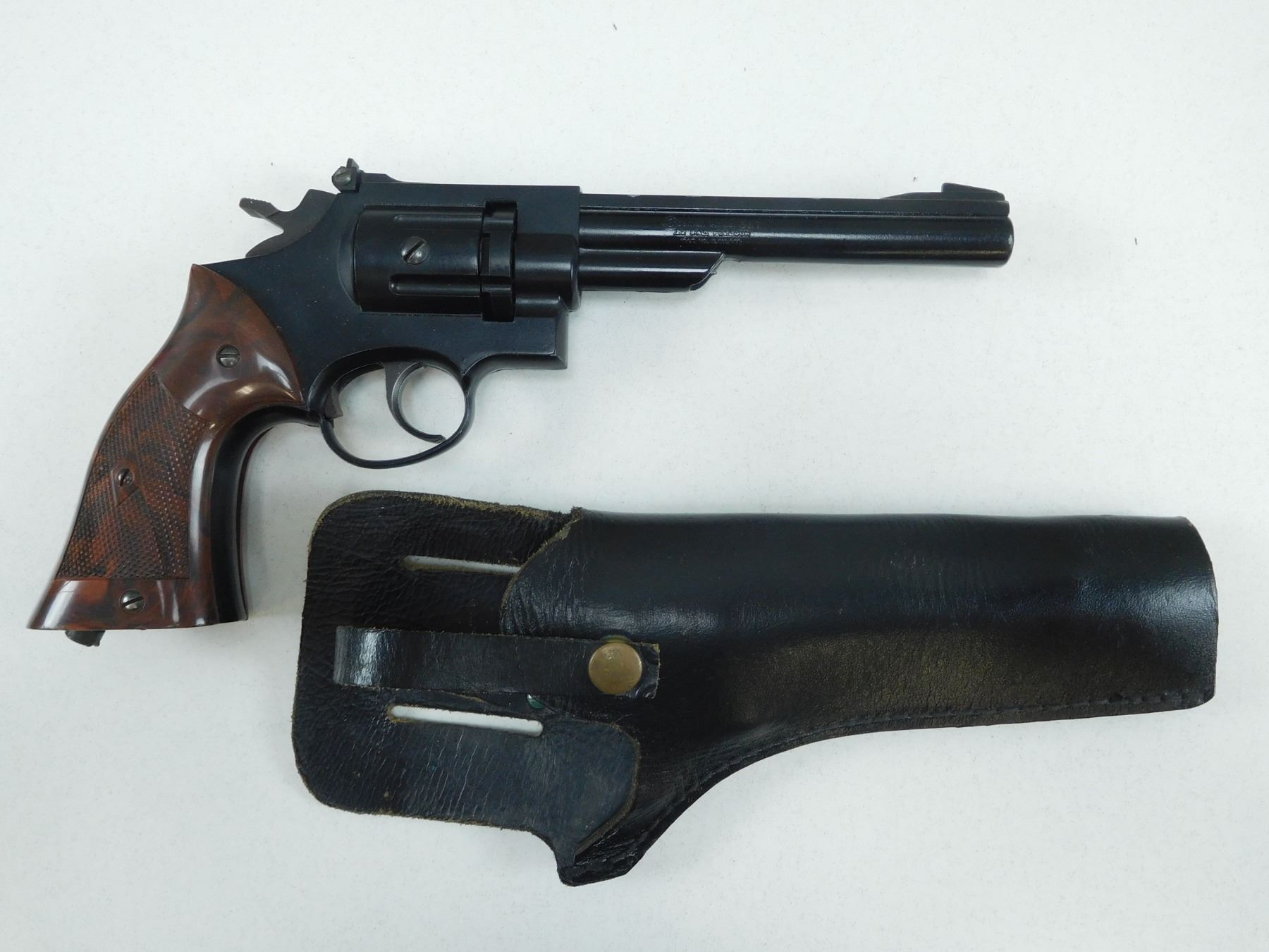 CROSMAN MODEL 38T PELLGUN , .22 CAL, WITH LEATHER HOLSTER