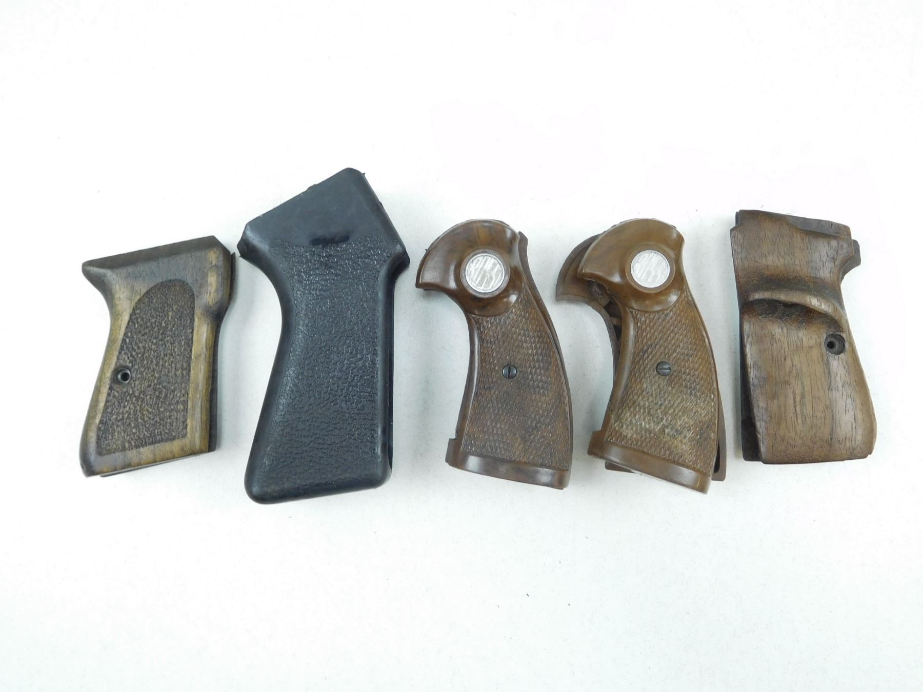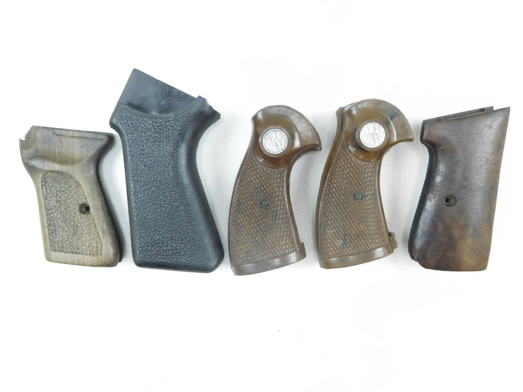ASSORTED HANDGUN GRIPS , INCLUDES WOOD & PLASTIC: (2) ROSSI, LOT OF 5