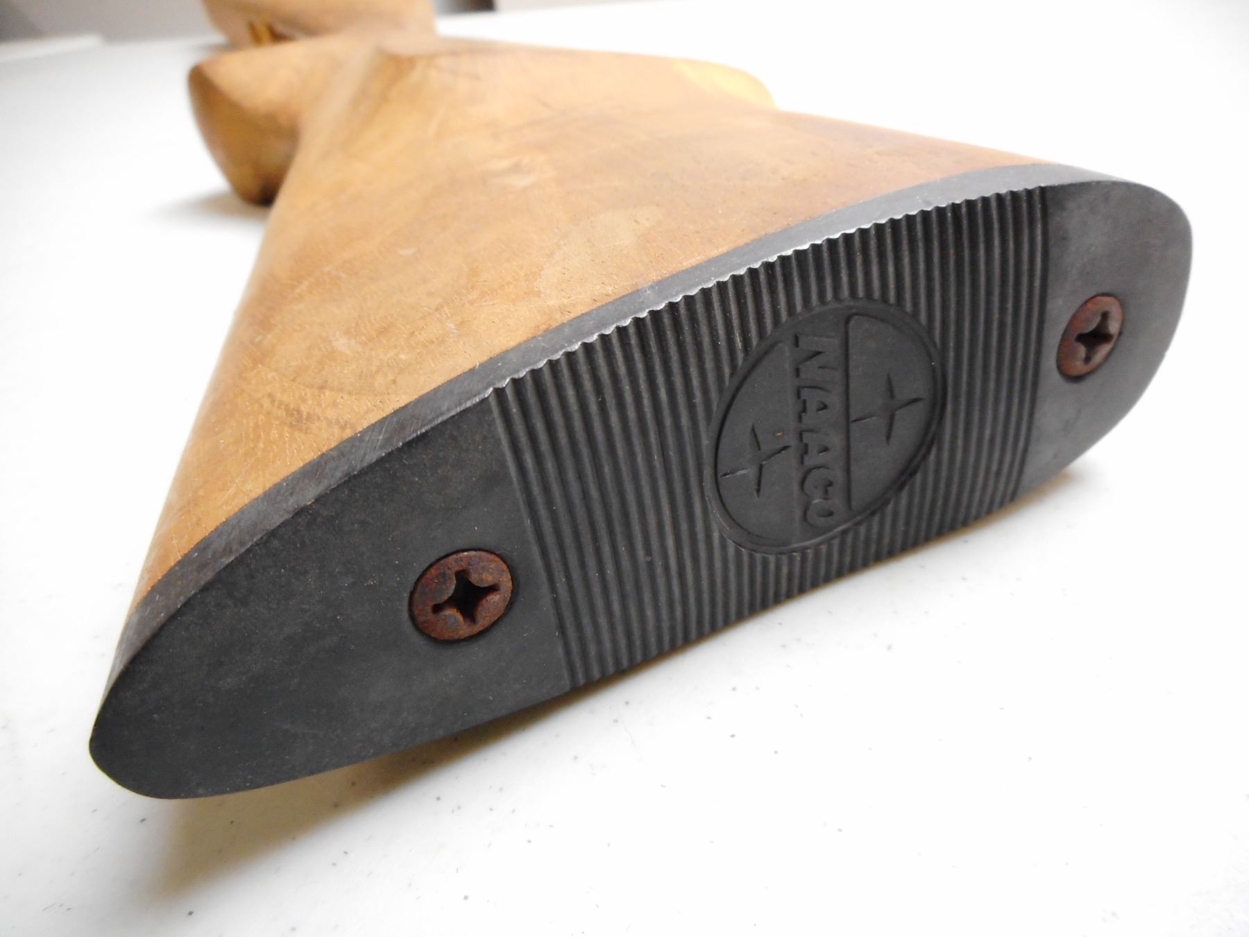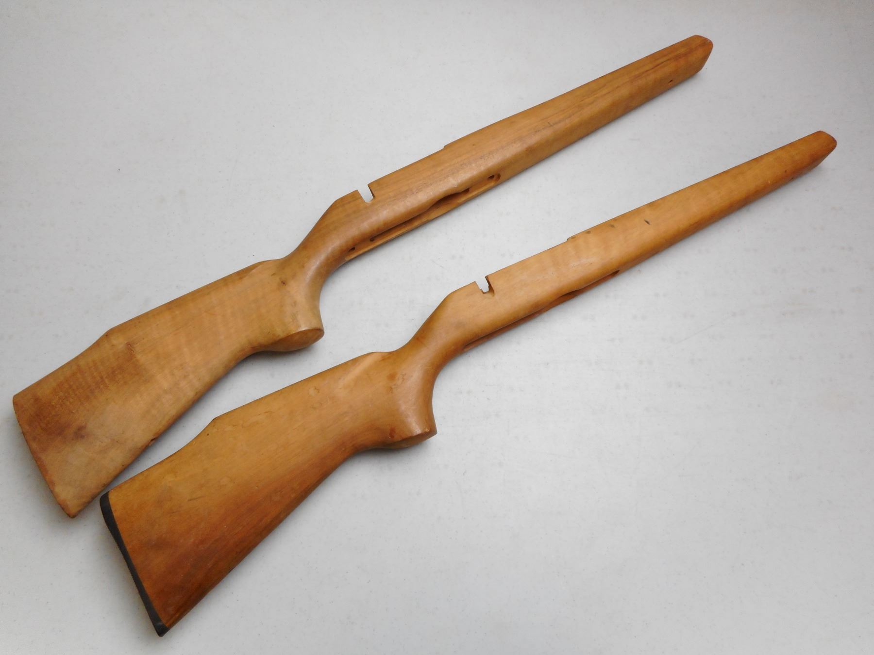 WOOD CARVED GUNSTOCK , (1) WITH NAACO PLASTIC BUTT PLATE, (1) WITHOUT, LOT OF 2