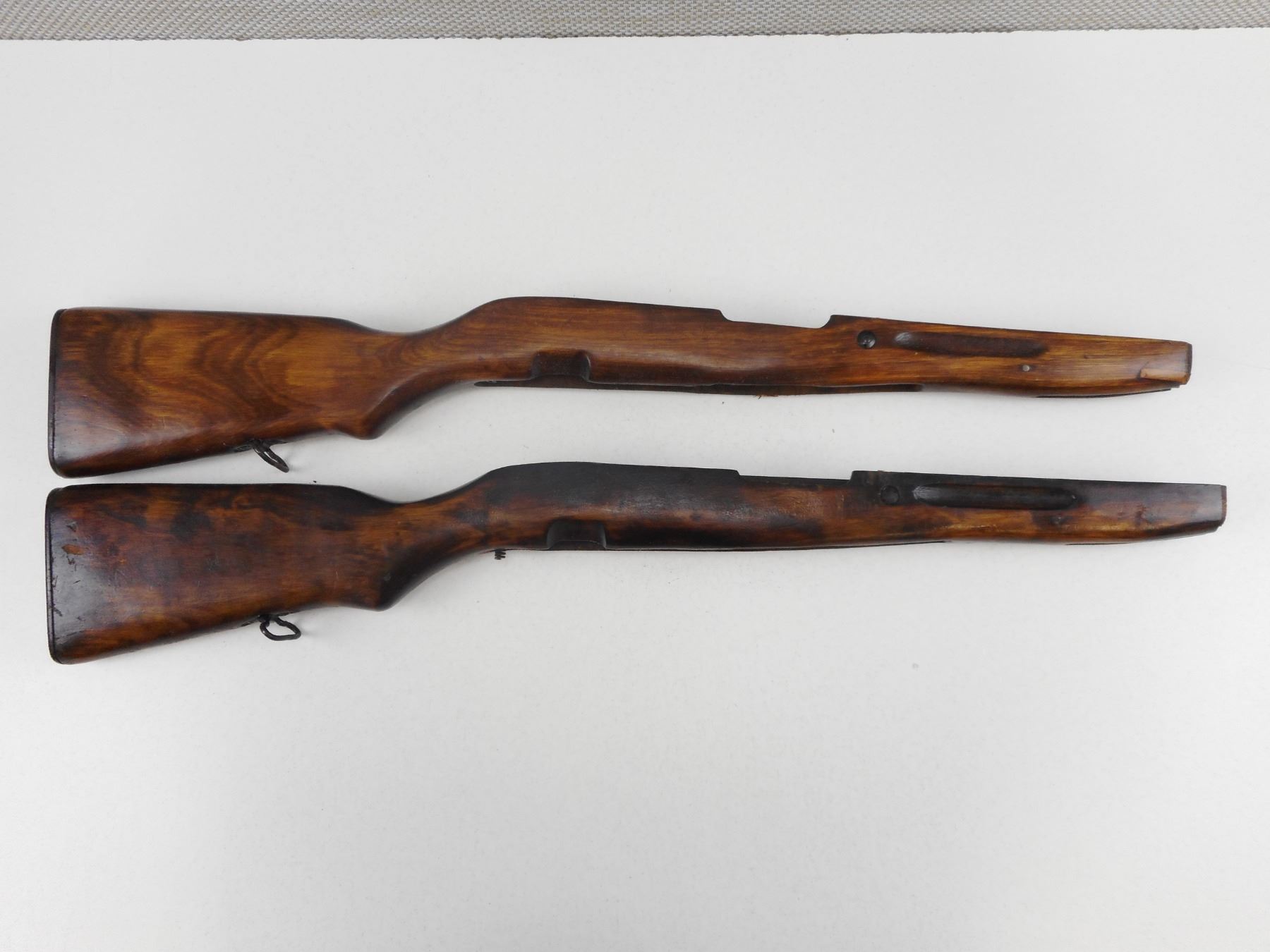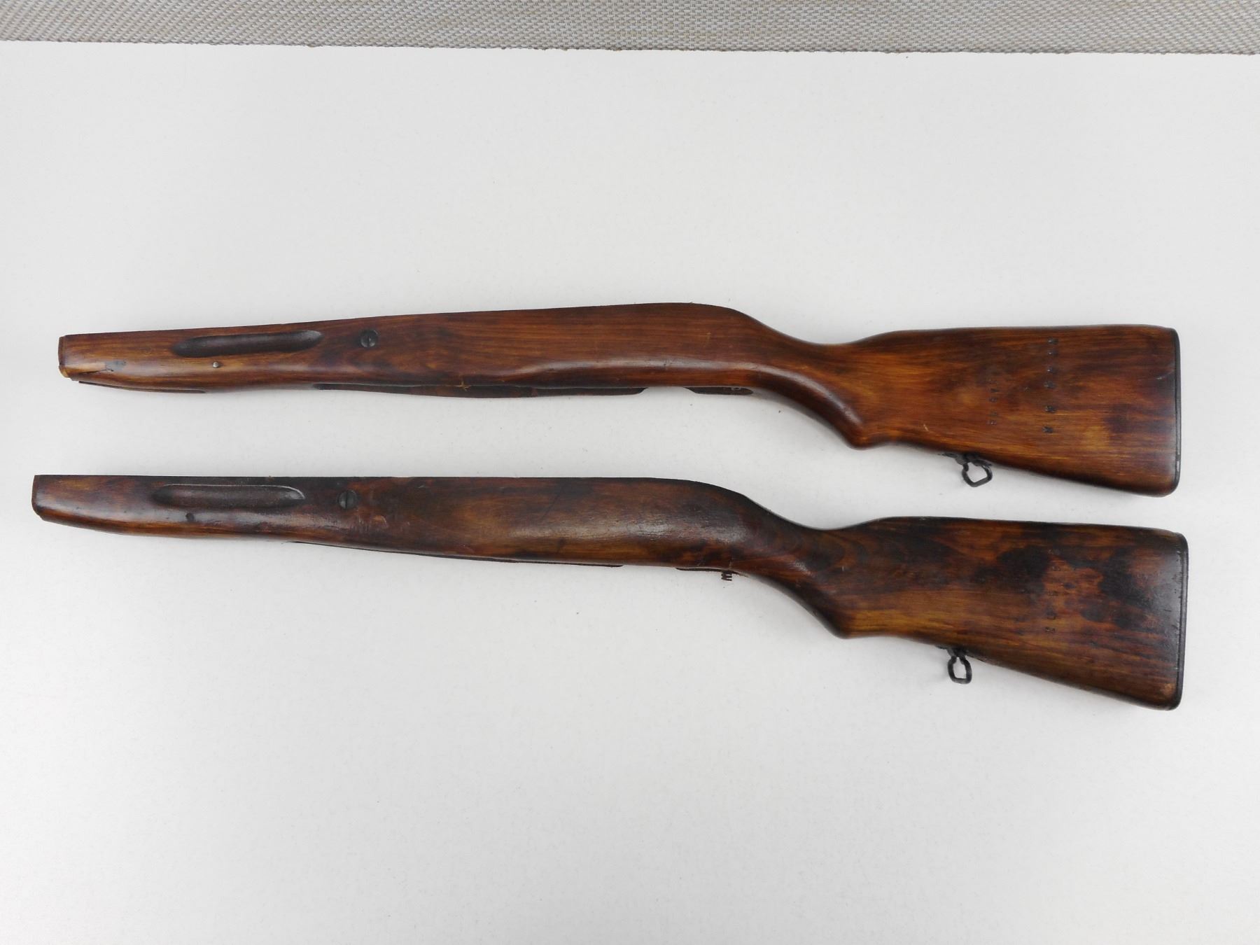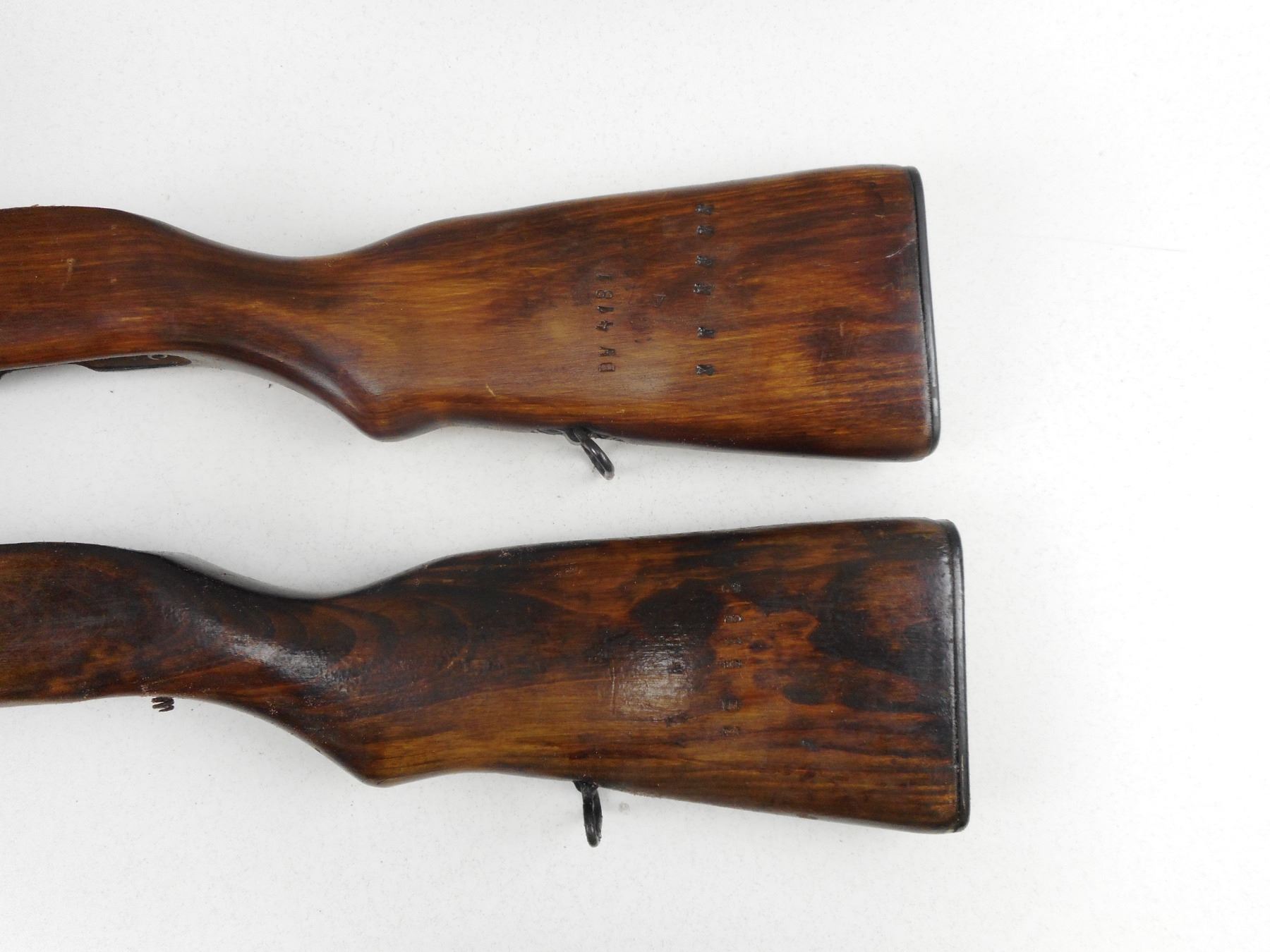 WOODEN SKS GUN STOCK , BOTH WITH PLASTIC BUTT PLATE & SLING RING